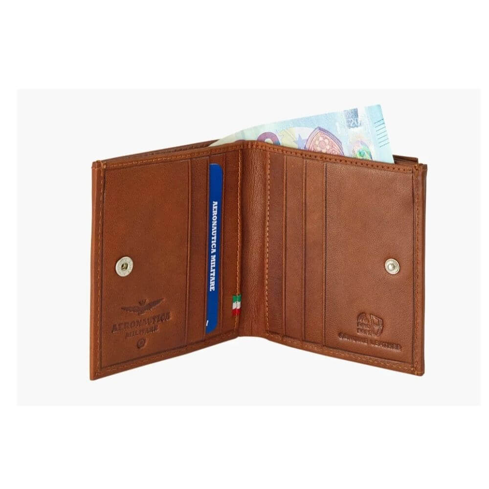 Ανδρικό πορτοφόλι Aeronautica Militare AM-234 CUOIO σε κομψή ταμπά απόχρωση, κατασκευασμένο από γνήσιο δέρμα υψηλής ποιότητας. Ένα διαχρονικό και πρακτικό αξεσουάρ που συνδυάζει ιταλικό στυλ, ανθεκτικότητα και άριστη οργάνωση για την καθημερινότητα.