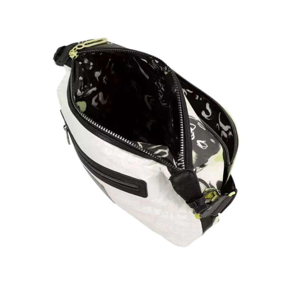 Διαθέτει μεγάλο μέγεθος, ιδανικό για καθημερινή χρήση, και ασφαλές κλείσιμο με φερμουάρ. Στο εξωτερικό θα βρείτε μία μπροστινή και μία πίσω τσέπη με φερμουάρ, ενώ το εσωτερικό της περιλαμβάνει φόδρα, θήκη για κινητό και επιπλέον τσέπη με φερμουάρ. Ο ρυθμιζόμενος ιμάντας επιτρέπει να φορεθεί είτε στον ώμο είτε χιαστί, προσφέροντας άνεση και ευελιξία.