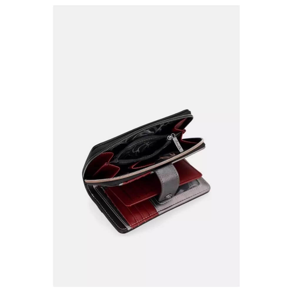 Γυναικείο μεσαίο πορτοφόλι Anekke Mademoiselle .Αποτελεί ένα κομψό και πρακτικό αξεσουάρ, ιδανικό για γυναίκες που αναζητούν στυλ, οργάνωση και ασφάλεια στην καθημερινότητά τους. Είναι κατασκευασμένο από οικολογικό συνθετικό δέρμα υψηλής ποιότητας, προσφέροντας αντοχή και ευχάριστη αίσθηση στη χρήση. Διαθέτει τεχνολογία RFID, η οποία προστατεύει τις κάρτες από ανεπιθύμητες ανέπαφες συναλλαγές και ηλεκτρονικές απάτες. Ο εσωτερικός του σχεδιασμός περιλαμβάνει δύο θέσεις για χαρτονομίσματα, πολλαπλές υποδοχές για κάρτες, μία αποσπώμενη καρτοθήκη καθώς και κρυφές εσωτερικές θήκες για μεγαλύτερη ασφάλεια. Επιπλέον, το μεγάλο εξωτερικό φερμουάρ ανοίγει σε εσωτερική θήκη, ιδανική για την αποθήκευση κερμάτων.Συνδυάζει άνεση και λειτουργικότητα, χωρώντας εύκολα σε κάθε τσάντα, ενώ παραμένει πιστό στη διαχρονική κομψότητα που χαρακτηρίζει την Anekke.