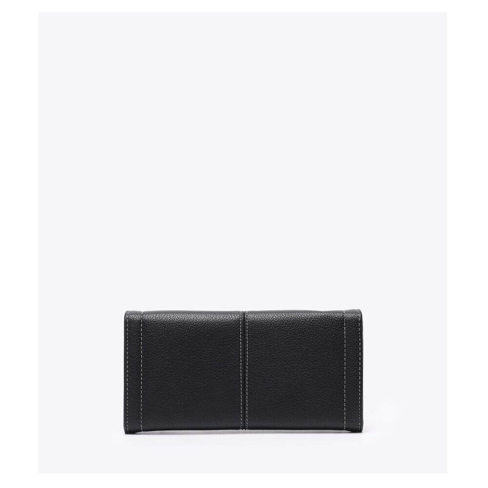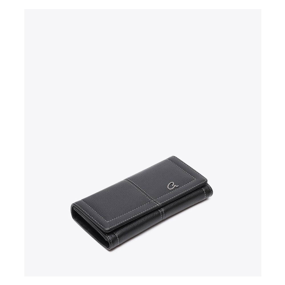 Γυναικείο πορτοφόλι Axel Accessories σε κομψό μαύρο χρώμα, σχεδιασμένο για να συνδυάζει πρακτικότητα και elegant ύφος. Η εξωτερική του επιφάνεια από υψηλής ποιότητας τεχνόδερμα διακοσμείται με εμφανή ραφή σε αντίθεση, προσθέτοντας μια σύγχρονη και minimal λεπτομέρεια στο design. Κλείνει με μαγνητικό κούμπωμα που εξασφαλίζει άνεση και ασφάλεια στη χρήση, ενώ το εσωτερικό του είναι οργανωμένο με κεντρική θήκη με φερμουάρ για κέρματα, θέσεις για χαρτονομίσματα και πολλαπλές θήκες για κάρτες, ώστε να τακτοποιείτε εύκολα όλα όσα χρειάζεστε. Με διαστάσεις 19 × 10 × 2.5 cm, αποτελεί μια πρακτική και κομψή επιλογή που χωράει άνετα σε κάθε τσάντα, ιδανικό για καθημερινή χρήση με διαχρονικό στυλ.