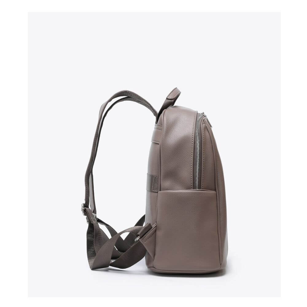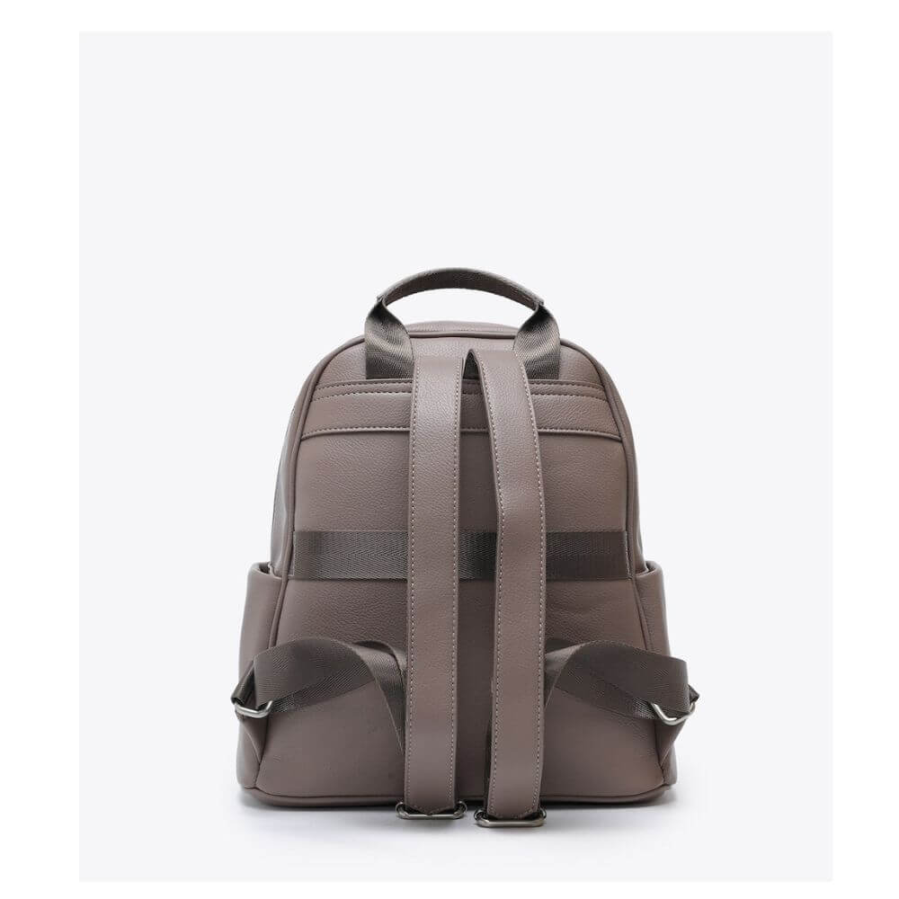 Εξωτερικά διαθέτει πλαϊνές θήκες, ρυθμιζόμενους ιμάντες πλάτης και επιπλέον ιμάντα που επιτρέπει τη στερέωση σε βαλίτσα, προσφέροντας ευκολία στις μετακινήσεις. Κλείνει με διπλό μεταλλικό φερμουάρ σε ασημί ματ απόχρωση, εξασφαλίζοντας ασφάλεια και στυλ.