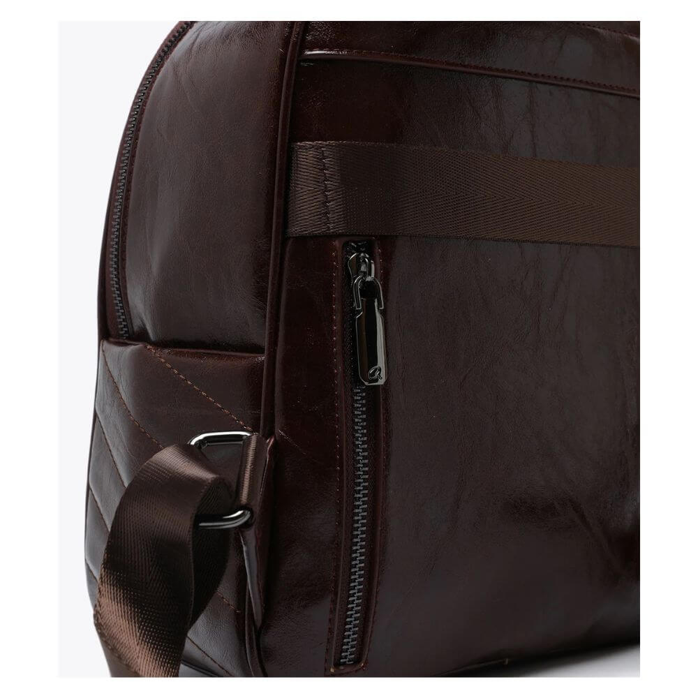 Είναι κατασκευασμένη από συνθετικό δέρμα και διαθέτει εσωτερική φόδρα. Το εσωτερικό της περιλαμβάνει θήκες οργάνωσης και εσωτερική τσέπη με φερμουάρ, ενώ στο πίσω μέρος υπάρχει επιπλέον τσέπη για εύκολη και ασφαλή πρόσβαση. Κλείνει με διπλό φερμουάρ για μεγαλύτερη πρακτικότητα και ασφάλεια.