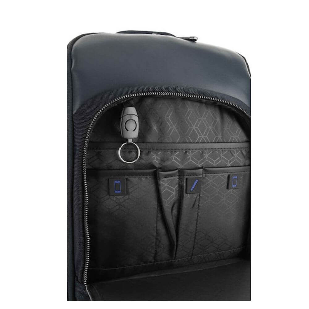 Σακίδιο πλάτης της εταιρείας Beverly Hills Polo Club από τη σειρά Business, κωδικός BH-8464-NERO, σχεδιασμένο για επαγγελματική και καθημερινή χρήση. Διαθέτει δύο ευρύχωρες κεντρικές θέσεις που προσφέρουν άνεση και σωστή οργάνωση. Περιλαμβάνει πολλές εσωτερικές και εξωτερικές θήκες, εσωτερική θήκη για κινητό, εσωτερικό χώρισμα, ειδικές θέσεις για στυλό καθώς και επιπλέον θήκες που κλείνουν με φερμουάρ για ασφαλή αποθήκευση. Είναι εξοπλισμένο με θύρα USB για φόρτιση συσκευών, προστατευτική θήκη για tablet έως 10” και ενισχυμένη θήκη για laptop έως 17”. Στο πίσω μέρος διαθέτει ειδική θήκη για προσαρμογή σε μηχανισμό βαλίτσας τρόλεϊ, διευκολύνοντας τις μετακινήσεις και τα ταξίδια. Το σακίδιο Beverly Hills Polo Club BH-8464 είναι κατασκευασμένο από συνδυασμό υψηλής ποιότητας δερματίνης και πολυεστέρα, προσφέροντας αντοχή, λειτουργικότητα και κομψό επαγγελματικό στυλ.