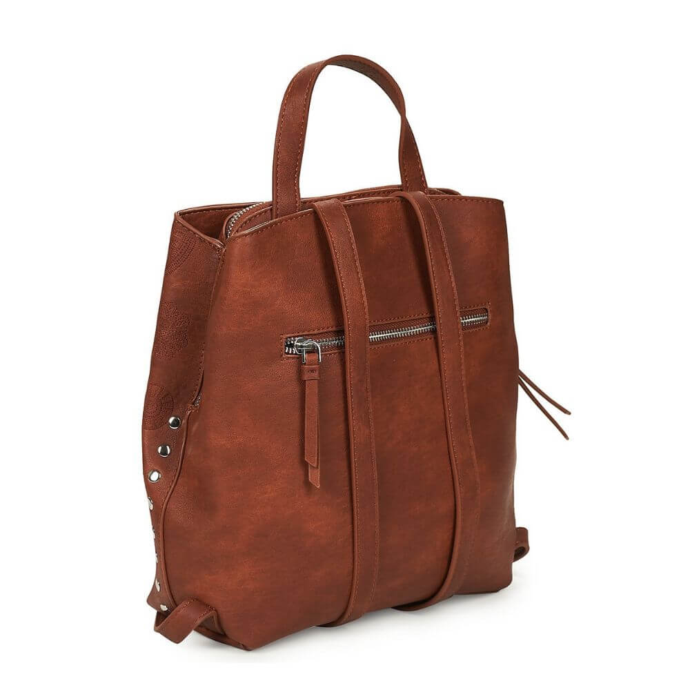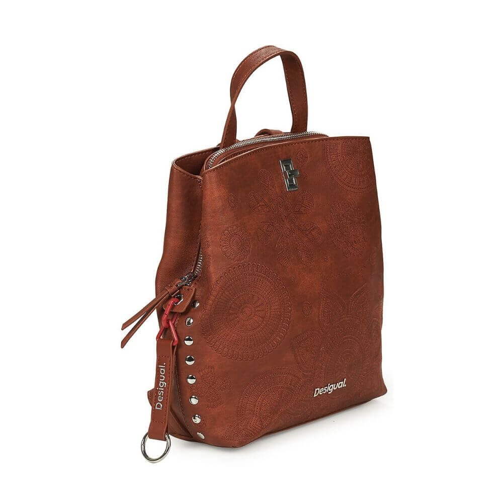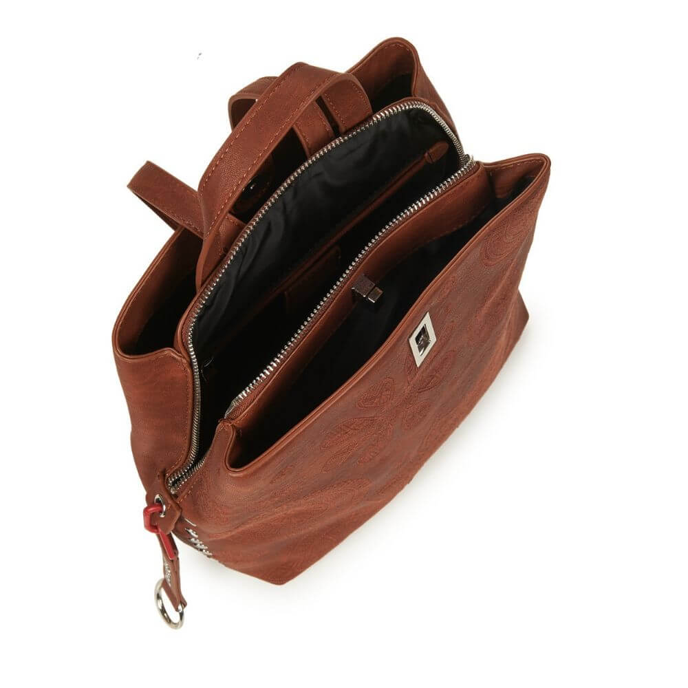 Desigual Backpack Dejavu Sumy Mini (25SAKP02-6011), ένα μικρό αλλά κομψό σακίδιο πλάτης σε κάμελ απόχρωση με ανάγλυφα φλοράλ σχέδια και μεταλλικό κούμπωμα.
