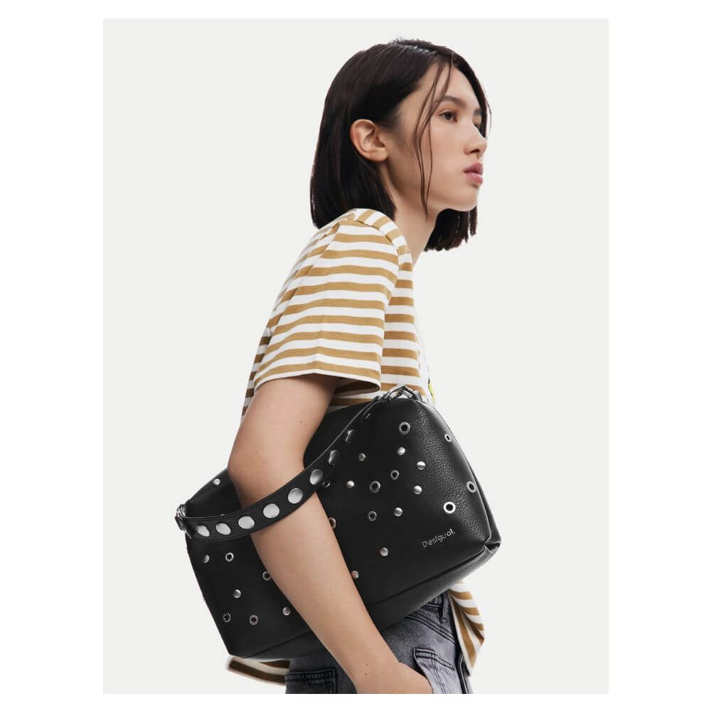 Τσάντα χειρός και crossbody Desigual με μοντέρνο σχεδιασμό και διακοσμητικά τρουκς που προσδίδουν δυναμικό χαρακτήρα.