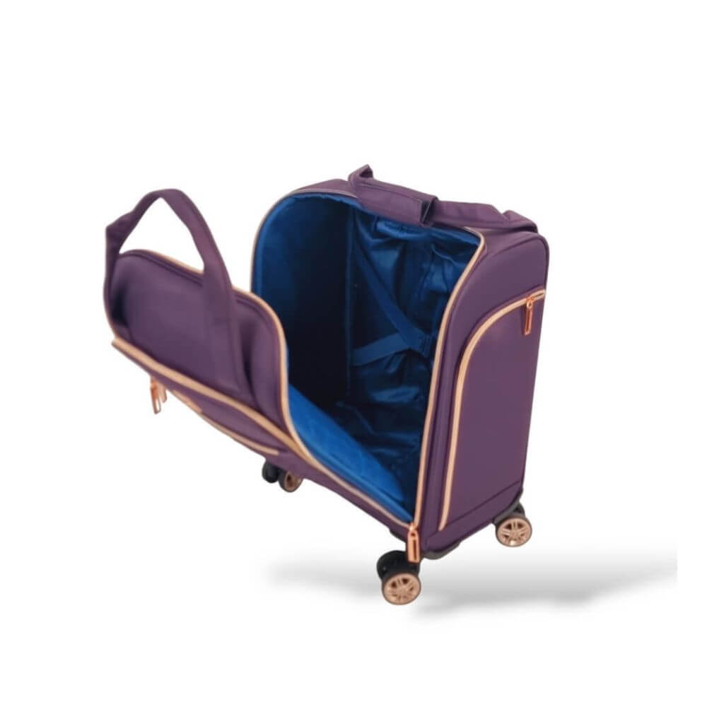 Η Diplomat Monaco ZC9001-XS είναι μία ελαφριά τροχήλατη βαλίτσα καμπίνας, ιδανική για επαγγελματικά ταξίδια και αεροπορικές μετακινήσεις με περιορισμό μεγέθους χειραποσκευής. Με διαστάσεις 46x35x20 εκ., τοποθετείται κάτω από τη θέση (underseat), προσφέροντας μέγιστη ευκολία και άνεση. Είναι κατασκευασμένη από αδιάβροχο ύφασμα υψηλής ποιότητας, διαθέτει ενισχυμένα χερούλια και πλήρη εσωτερική επένδυση, ενώ ο τηλεσκοπικός μηχανισμός και το trolley frame κρύβονται σε ειδικό φερμουάρ όταν δεν χρησιμοποιούνται.