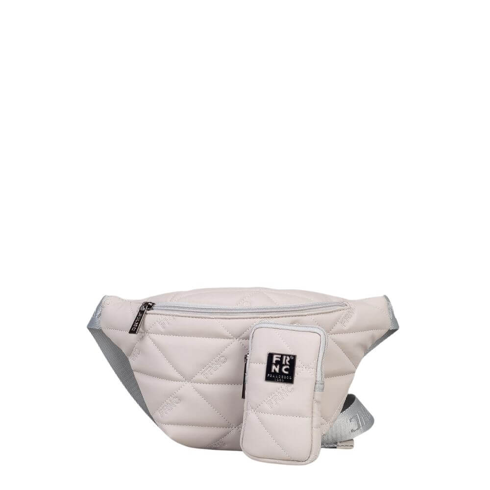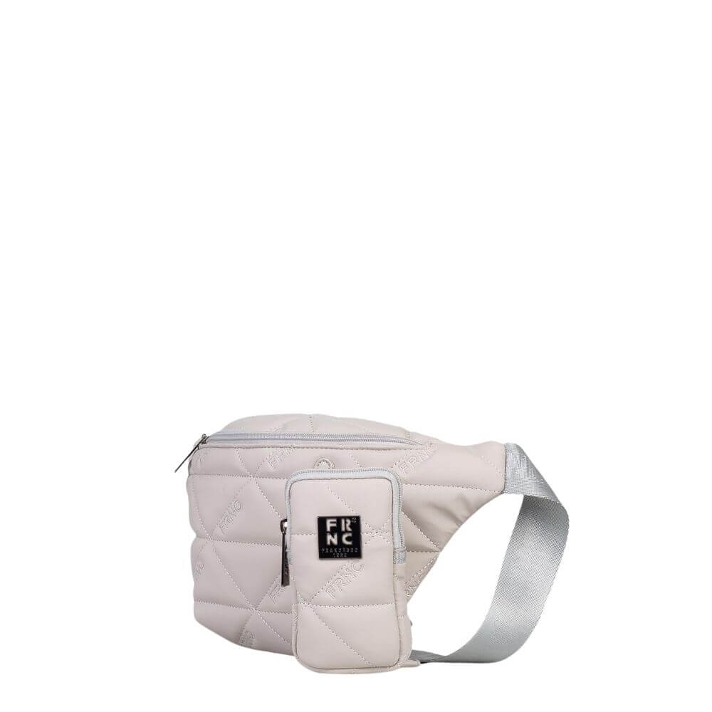 Διαθέτει ρυθμιζόμενο λουράκι-ιμάντα για άνετη εφαρμογή και προσαρμογή στον τρόπο που επιθυμείτε να τη φορέσετε, ενώ κλείνει με φερμουάρ για μεγαλύτερη ασφάλεια. Στο μπροστινό μέρος υπάρχει αποσπώμενο κρεμαστό μικρό τσαντάκι με διάτρητο λογότυπο FRNC, το οποίο προσθέτει μια ιδιαίτερη και πρακτική λεπτομέρεια στο σχέδιο.