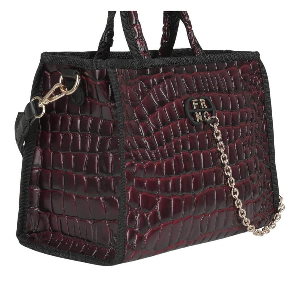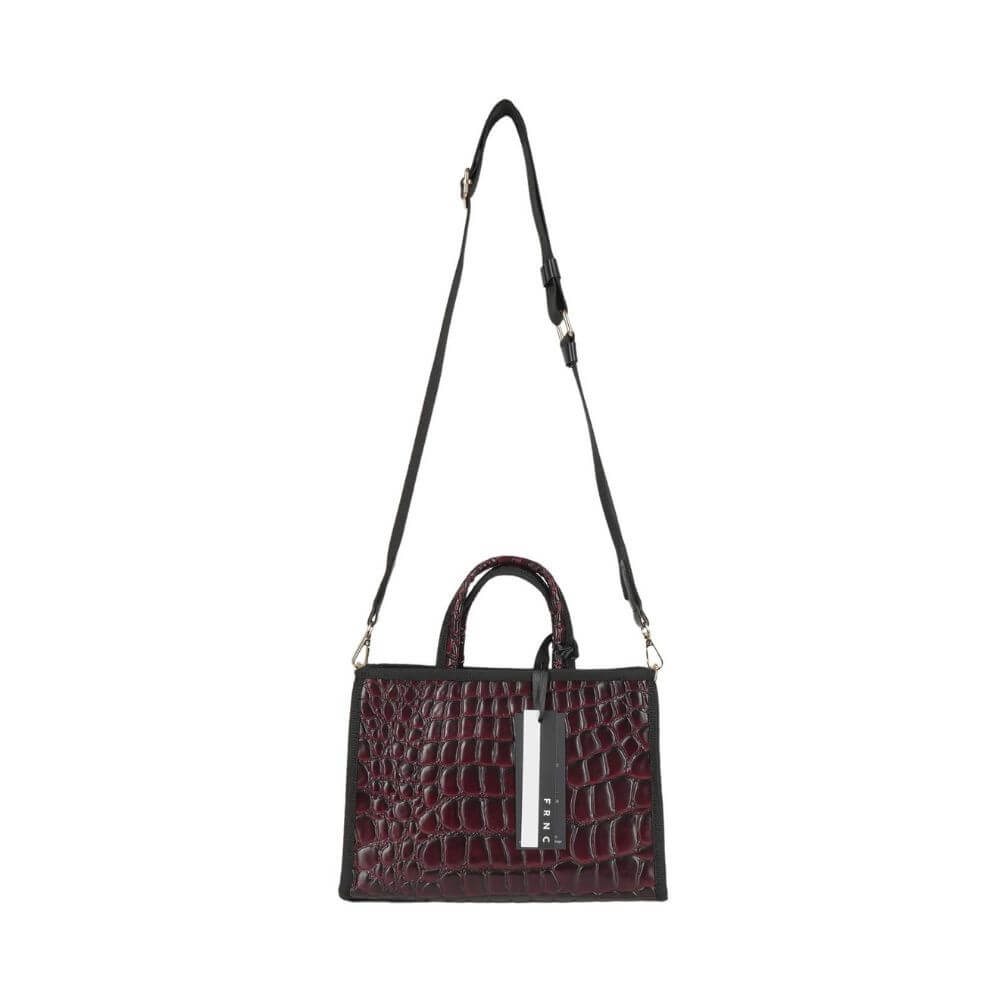 Γυναικεία τσάντα FRNC με κωδικό 5902 σε μπορντώ χρώμα .Συνδυάζει διαχρονική κομψότητα και πρακτικότητα, αποτελώντας ιδανική επιλογή για όλες τις ώρες της ημέρας. Κατασκευασμένη από Eco pelle υψηλής ποιότητας με croco όψη και υφή, διαθέτει φοδράρισμα από ύφασμα υψηλής ποιότητας και είναι 100% χειροποίητη στην Ελλάδα. Η τσάντα είναι μεσαίου μεγέθους και μπορεί να φορεθεί χιαστί, στον ώμο ή να κρατηθεί στο χέρι, χάρη στον ρυθμιζόμενο και αποσπώμενο ιμάντα ώμου και τη χειρολαβή.