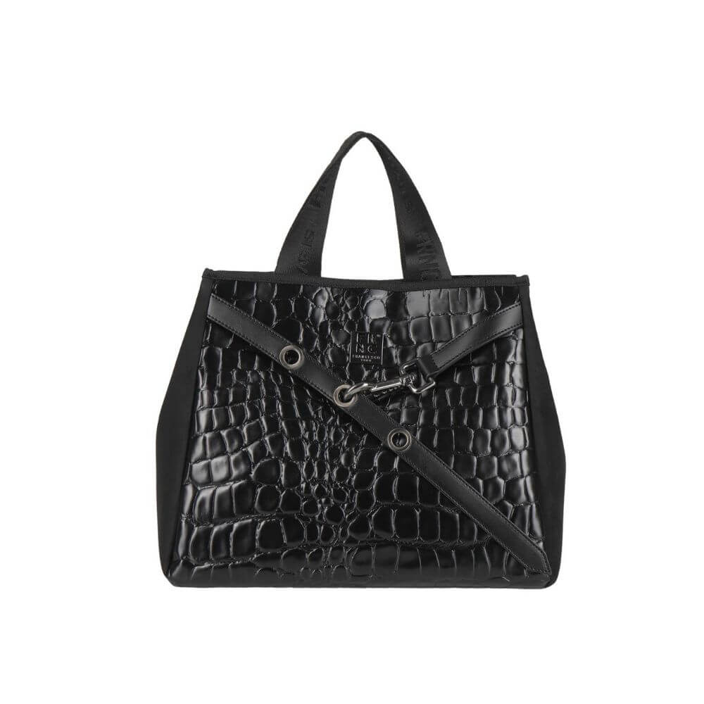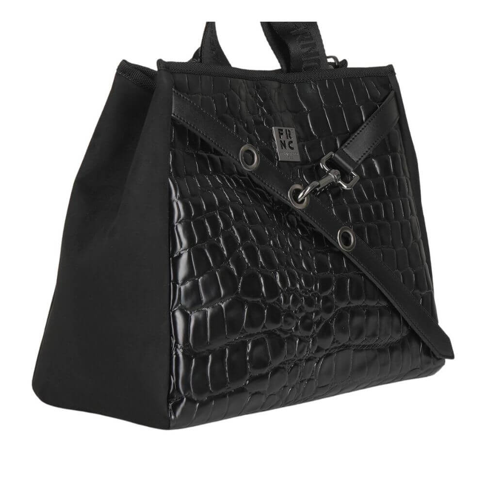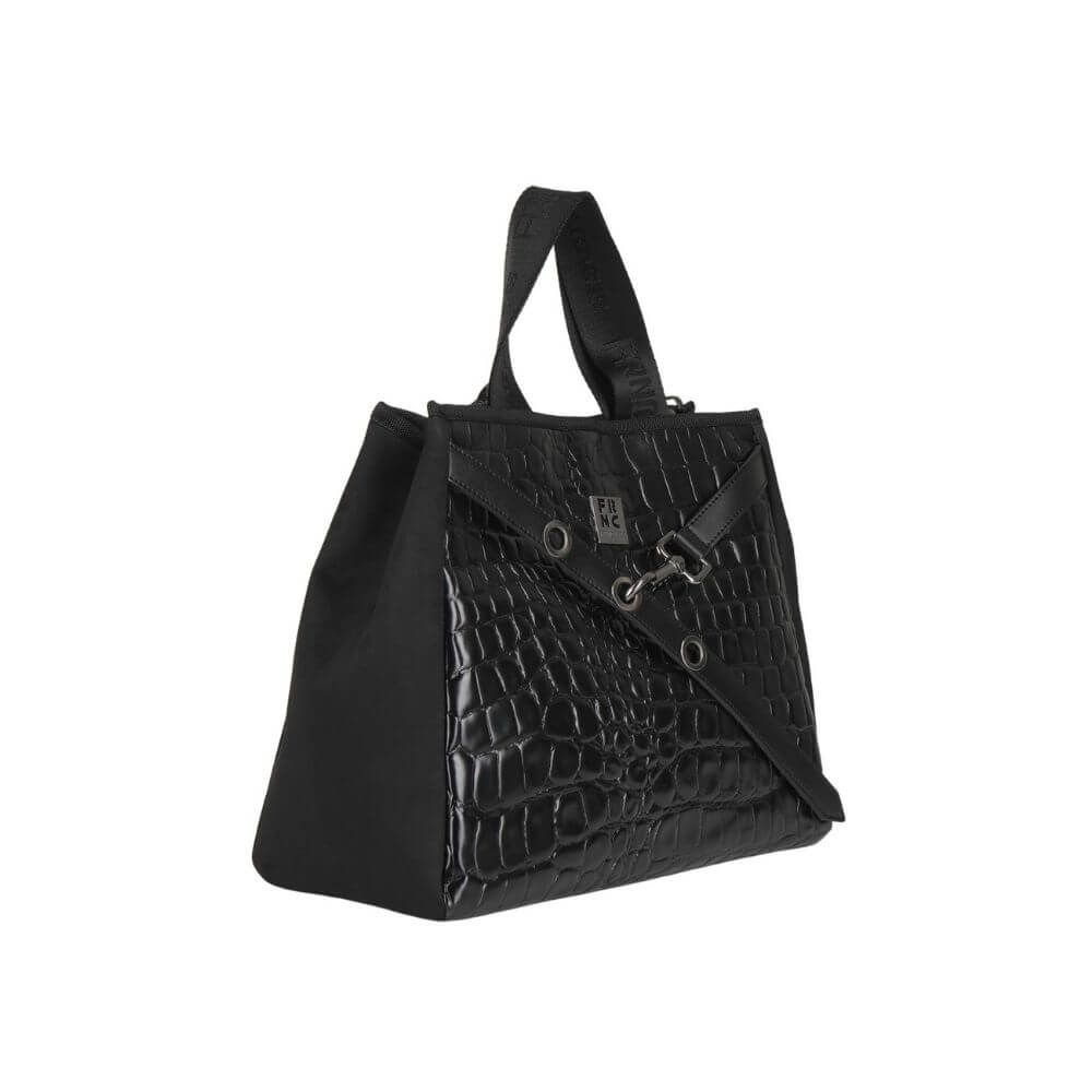 Γυναικεία τσάντα ώμου και χειρός FRNC με κωδικό 5923 σε μαύρο χρώμα .Συνδυάζει την κομψότητα με τη λειτουργικότητα, αποτελώντας την ιδανική επιλογή για κάθε περίσταση. Κατασκευασμένη από Eco pelle υψηλής ποιότητας σε croco όψη και υφή, με suede λεπτομέρειες στο πίσω μέρος και στα πλαϊνά, χαρίζει πολυτελή εμφάνιση και ξεχωριστό στυλ. Το εσωτερικό της είναι επενδεδυμένο με ύφασμα υψηλής ποιότητας και η κατασκευή της είναι 100% χειροποίητη στην Ελλάδα.