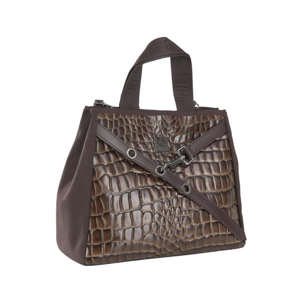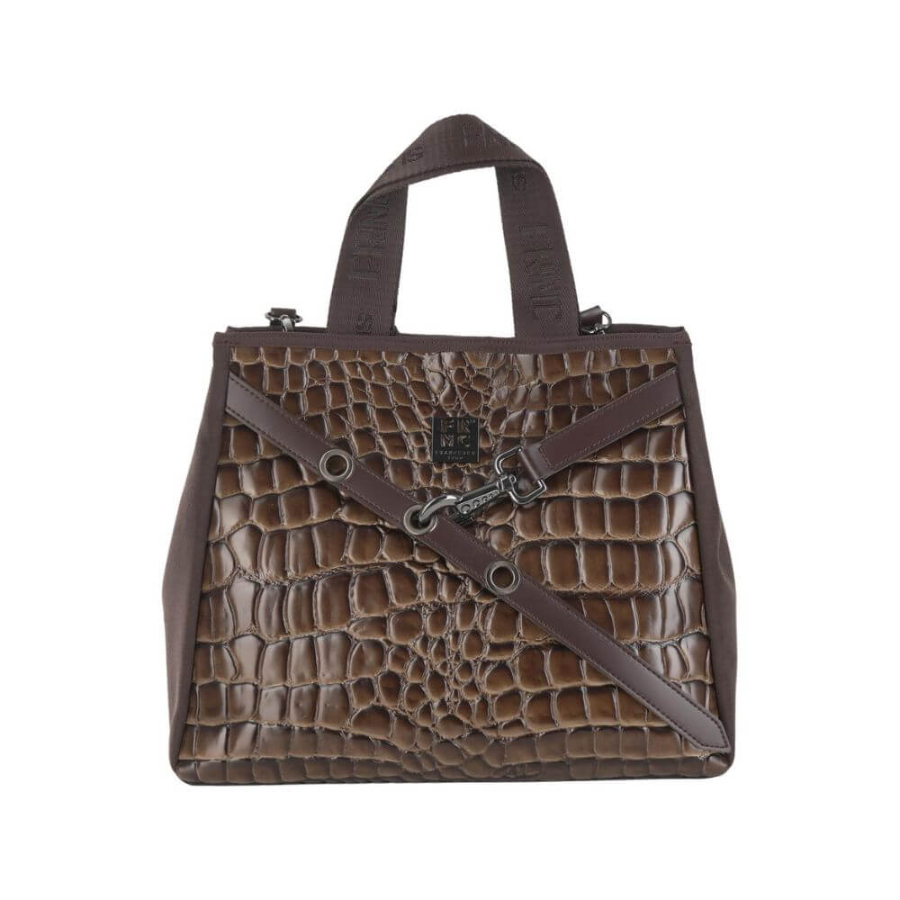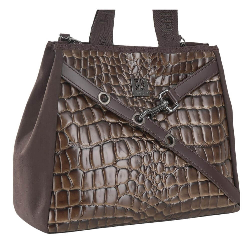Γυναικεία τσάντα ώμου και χειρός FRNC με κωδικό 5923 σε καφέ χρώμα .Είναι μία κομψή και ευρύχωρη επιλογή για γυναίκες που αγαπούν τη φινέτσα και την πρακτικότητα. Κατασκευασμένη από Eco pelle υψηλής ποιότητας σε croco όψη και υφή, με suede λεπτομέρειες στο πίσω μέρος και στα πλαϊνά, προσφέρει πολυτελή αισθητική και διαχρονικό στυλ. Το εσωτερικό είναι φοδραρισμένο με ύφασμα υψηλής ποιότητας και η τσάντα είναι 100% χειροποίητη στην Ελλάδα.