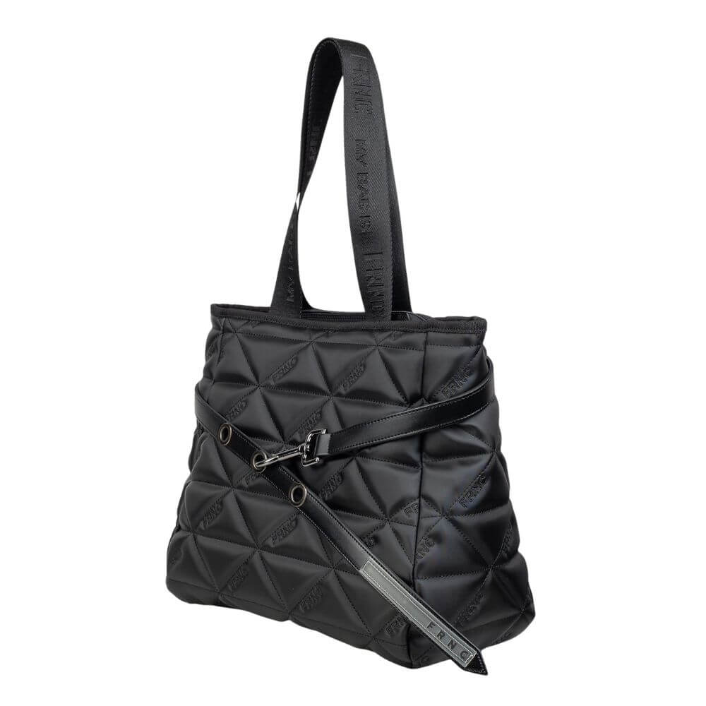 Κατασκευασμένη από eco pelle με καπιτονέ σχέδιο, η τσάντα ξεχωρίζει για την ανθεκτικότητα και την ιδιαίτερη αισθητική της, ενώ το ανάγλυφο λογότυπο FRNC ενισχύει τον σύγχρονο χαρακτήρα της. Ο σχεδιασμός της είναι προσεγμένος ώστε να προσφέρει άνεση και πρακτικότητα σε κάθε χρήση.