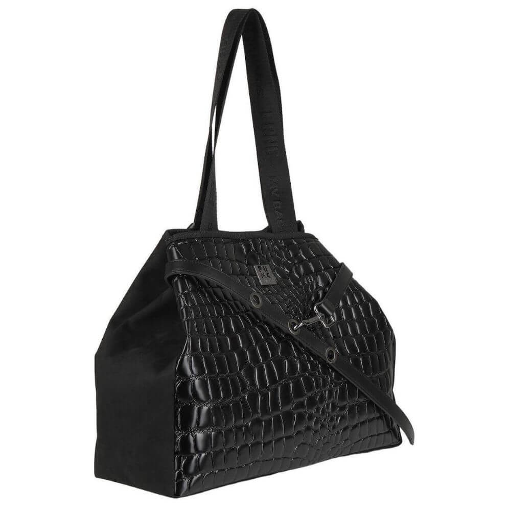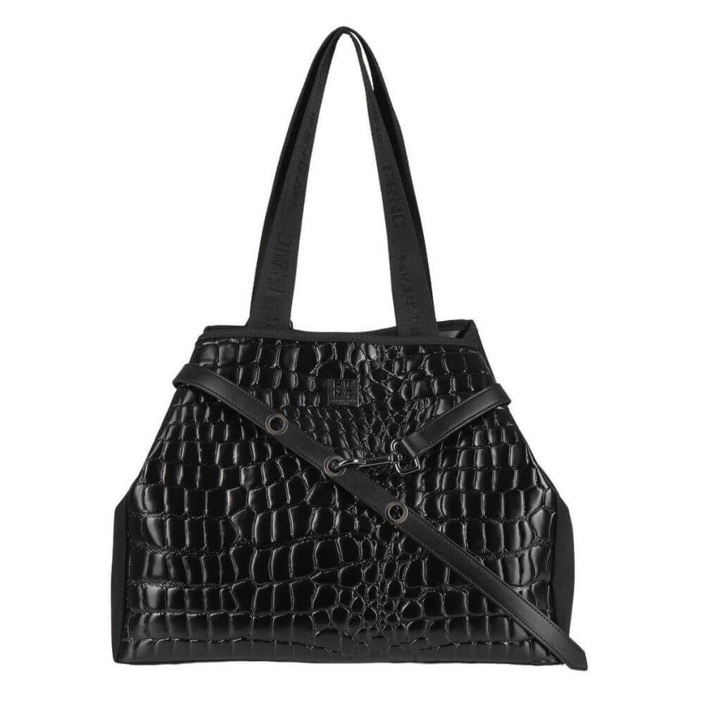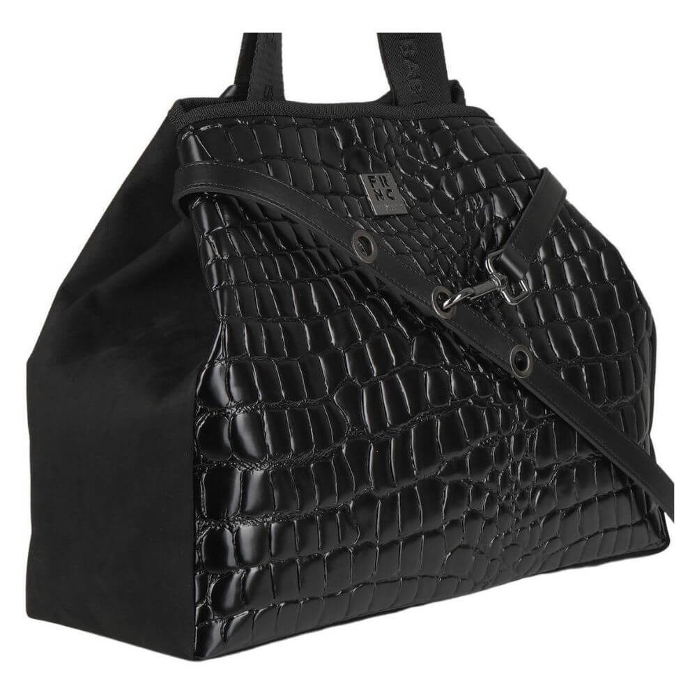 Γυναικεία τσάντα ώμου και χειρός FRNC με κωδικό 5925 σε μαύρο χρώμα .Είναι ένα κομψό και ευρύχωρο σχέδιο που συνδυάζει στυλ και πρακτικότητα. Κατασκευασμένη από Eco pelle σε croco όψη και υφή, με suede λεπτομέρειες στο πίσω μέρος και στα πλαϊνά, προσφέρει πολυτελή εμφάνιση και εξαιρετική ποιότητα. Το εσωτερικό της είναι φοδραρισμένο με ύφασμα υψηλής ποιότητας και η κατασκευή της είναι 100% χειροποίητη στην Ελλάδα.