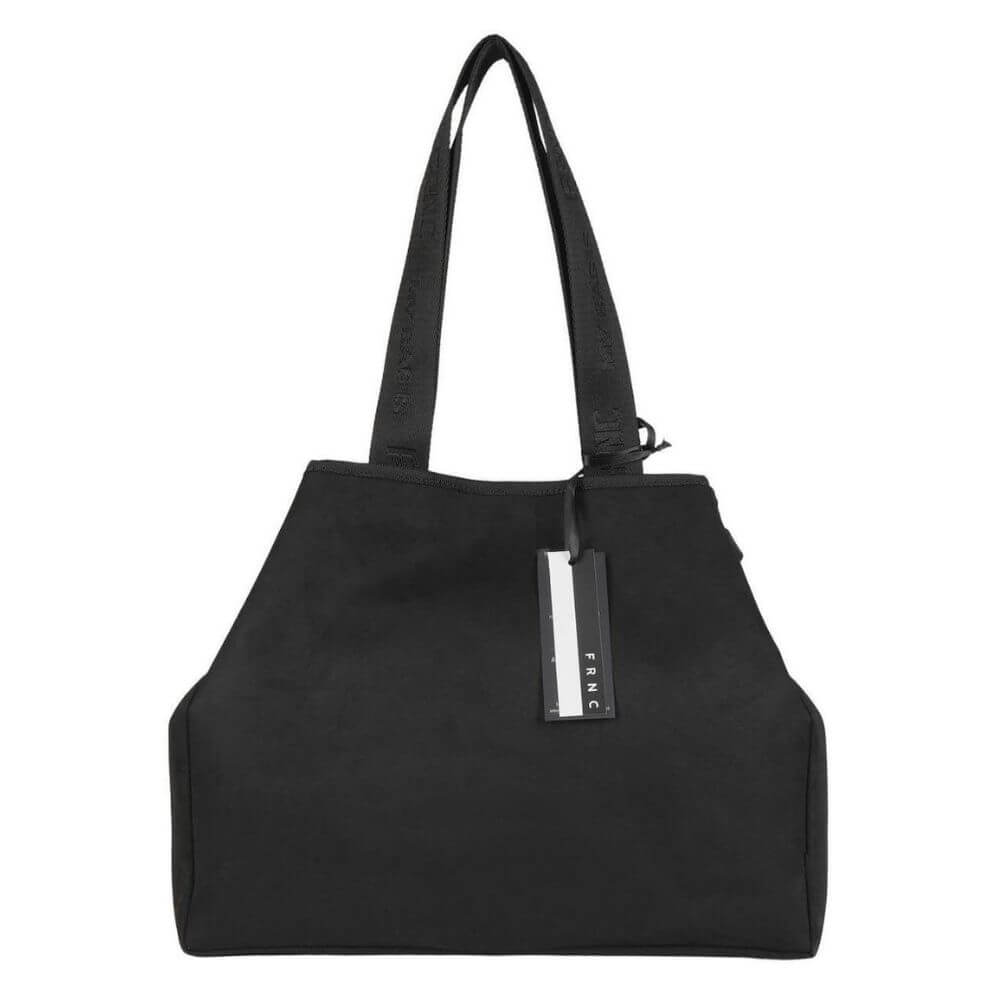 Διαθέτει διπλά λουράκια-ιμάντες για άνετη μεταφορά στον ώμο ή στο χέρι. Κλείνει με μαγνητικό κουμπί εξωτερικά και κλιπ εσωτερικά για επιπλέον ασφάλεια. Μπροστά ξεχωρίζει ο minimal σχεδιασμός με διακοσμητικά ζωνάκια που ενώνονται με μεταλλικό γάντζο και το διάτρητο μεταλλικό logo FRNC.