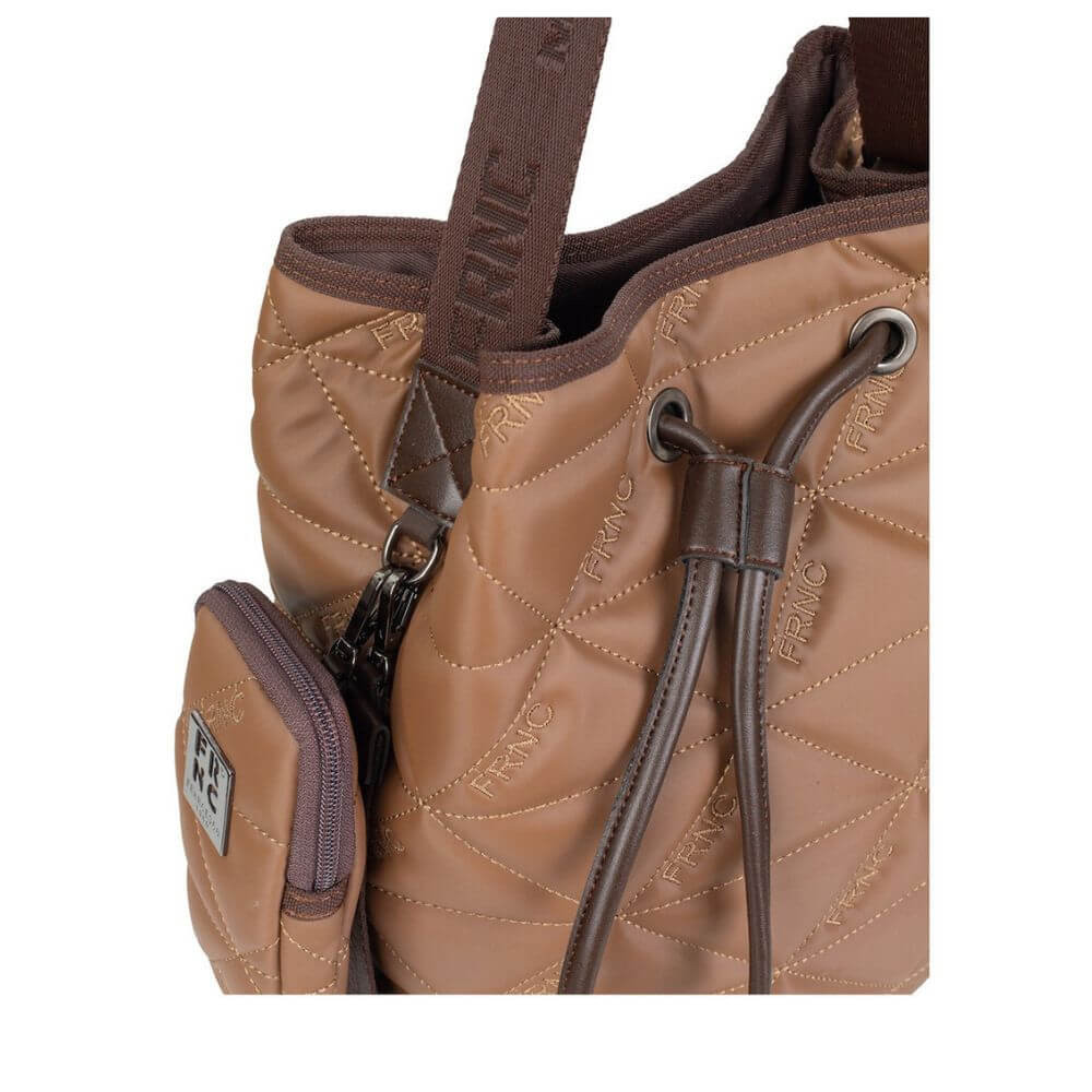 Γυναικεία τσάντα ώμου από την FRNC, χειμερινής συλλογής, με κωδικό 4139W, σε κομψό χρώμα πούρο. Κατασκευασμένη από αδιάβροχο συνθετικό υλικό υψηλής ποιότητας, προσφέρει ανθεκτικότητα, αντοχή στις καιρικές συνθήκες και ιδανική λειτουργικότητα για καθημερινή χρήση.