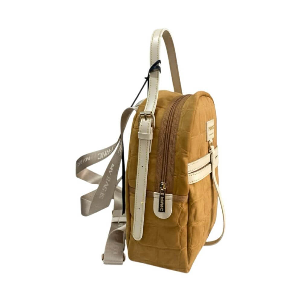 Γυναικεία τσάντα ώμου / πλάτης FRNC με κωδικό 6106 DCU σε κομψή ταμπά απόχρωση, ιδανική για καθημερινή χρήση με άνεση και στυλ. Ο πρακτικός σχεδιασμός της επιτρέπει να φοριέται τόσο στον ώμο όσο και στην πλάτη, προσφέροντας ευελιξία και λειτουργικότητα.