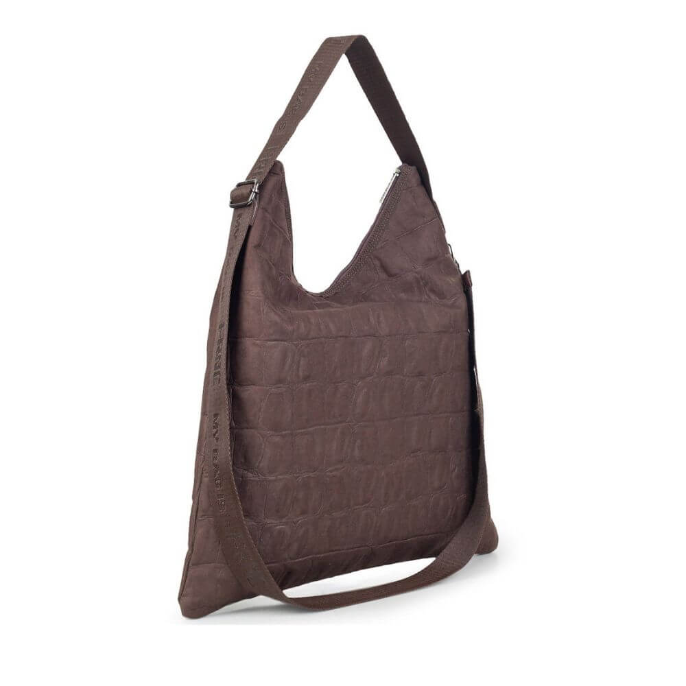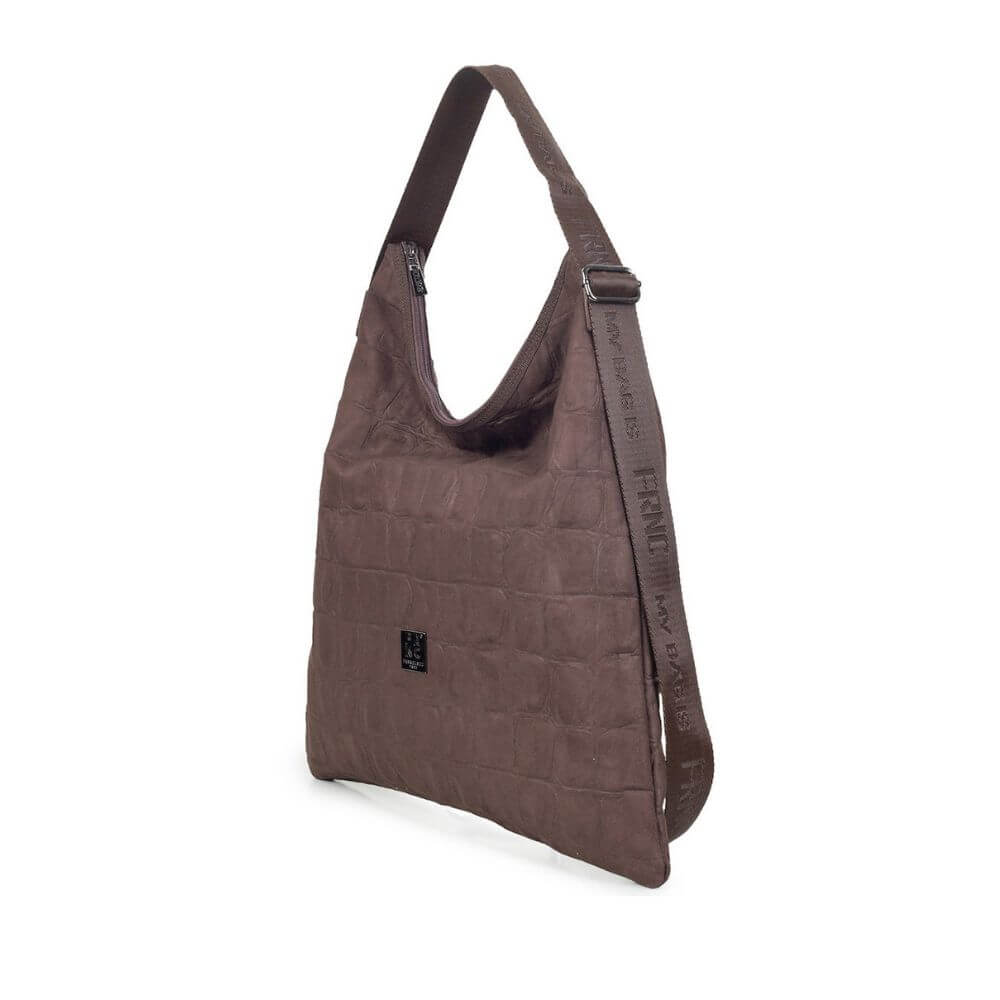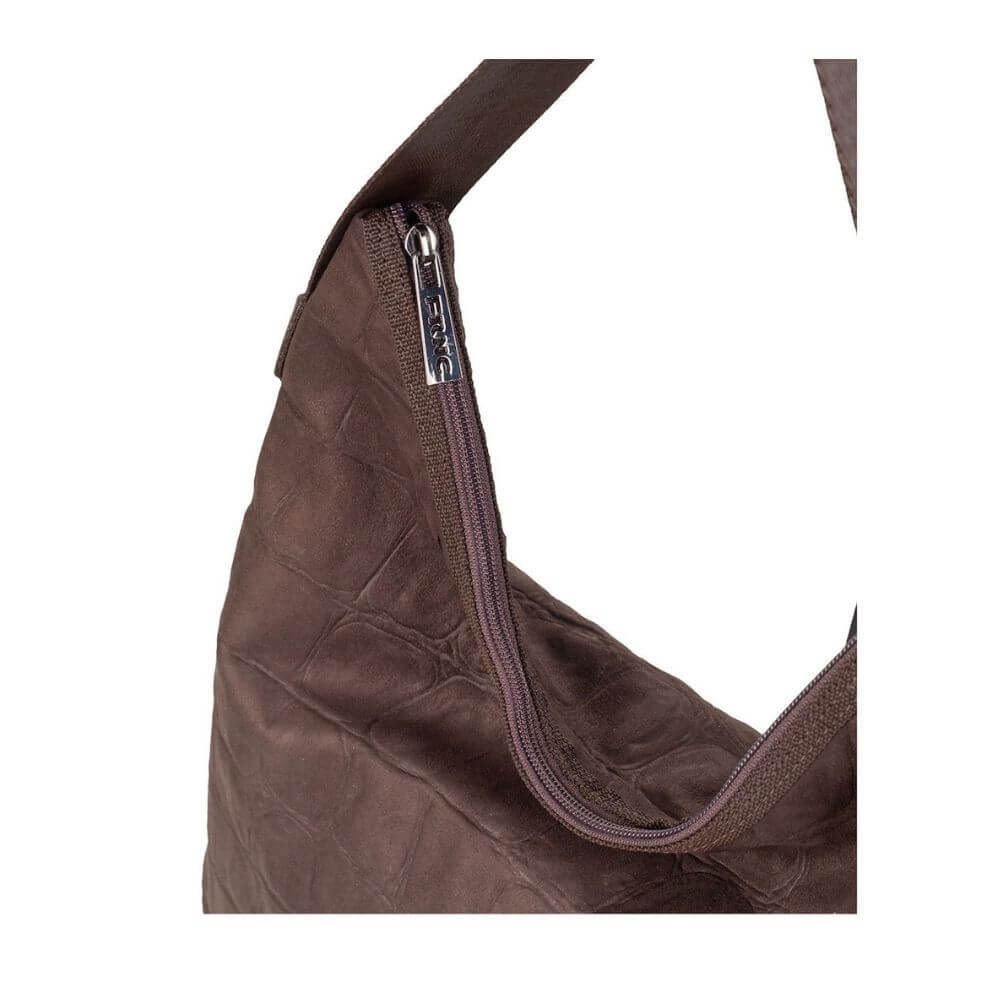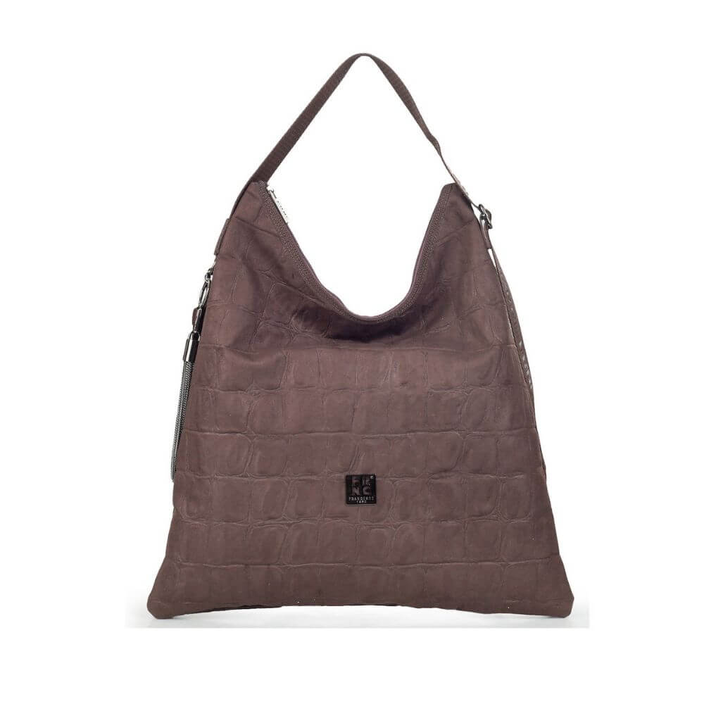 Γυναικεία τσάντα shopping ώμου και χειρός μεγάλου μεγέθους FRNC με κωδικό 6142, σε καφέ χρώμα. Κατασκευασμένη από Eco Nubuck υλικό με ανάγλυφη υφή και φοδραρισμένη με ύφασμα υψηλής ποιότητας, προσφέρει ανθεκτικότητα και κομψότητα. Διαθέτει μακρύ ρυθμιζόμενο λουράκι ιμάντα για να φοριέται και χιαστί, ενώ κλείνει με φερμουάρ για ασφάλεια. Στο μπροστινό μέρος βρίσκεται το διάτρητο μεταλλικό λογότυπο FRNC και στο πλάι το αποσπώμενο μεταλλικό διακοσμητικό μπρελόκ. Οι διαστάσεις της είναι Μ: 43 cm x Π: 7 cm x Υ: 27 cm. Εσωτερικά περιλαμβάνει ενιαίο χώρο, μία τσέπη με φερμουάρ και μία θήκη για κινητό. Είναι 100% χειροποίητο προϊόν Ελλάδας και συνοδεύεται από υφασμάτινη θήκη αποθήκευσης FRNC.