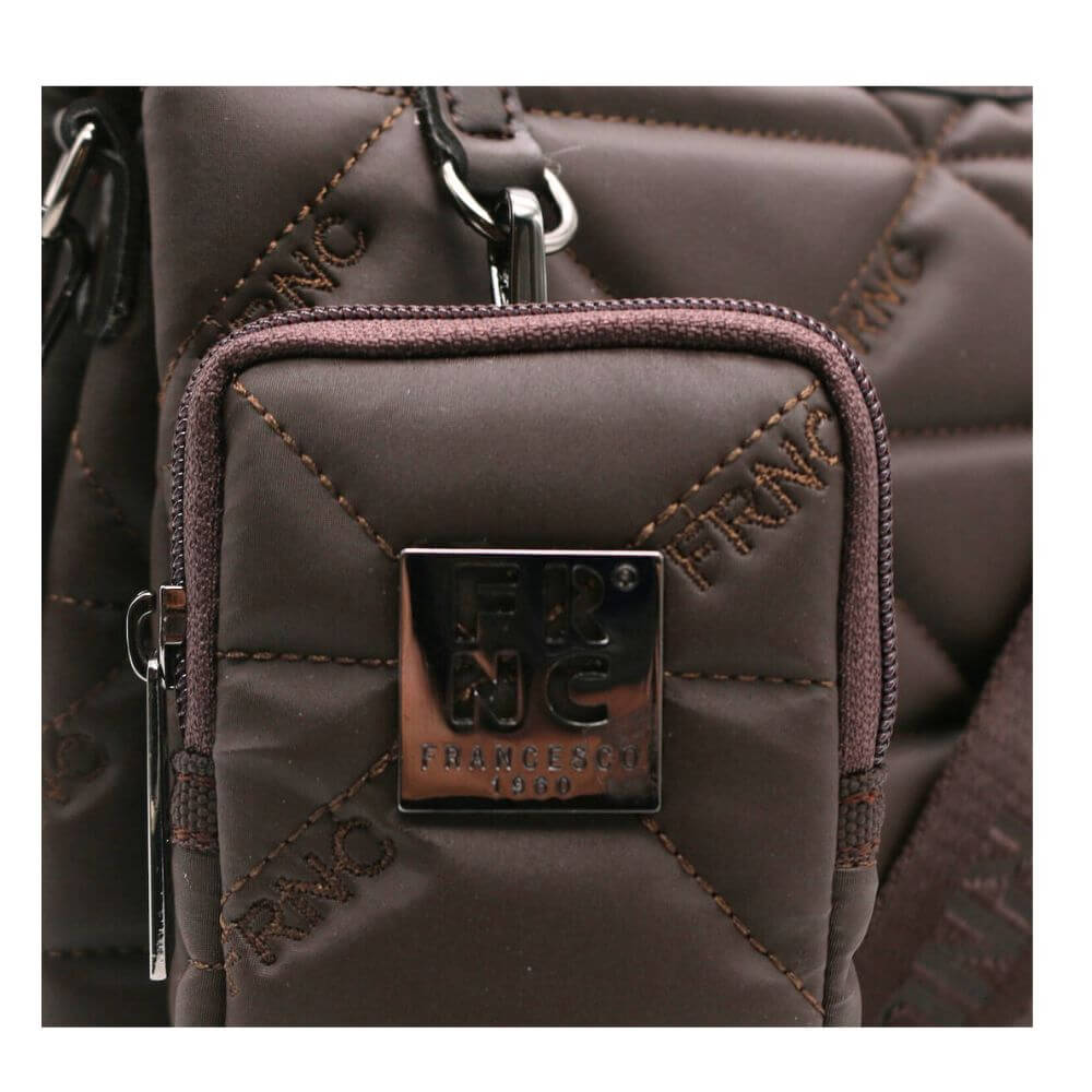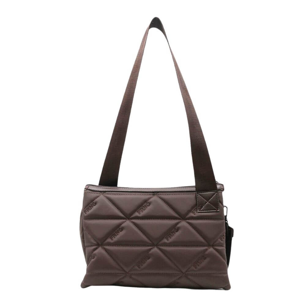 Γυναικεία τσάντα FRNC crossbody, ώμου και χιαστί με κωδικό 4148W, σε καφέ χρώμα. Κατασκευασμένη από Eco pelle satin, ένα αδιάβροχο υλικό με ανάγλυφο μοτίβο τριγώνου, που συνδυάζει κομψότητα και ανθεκτικότητα. Το εσωτερικό της είναι επενδεδυμένο με ύφασμα υψηλής ποιότητας, ενώ το κλείσιμό της γίνεται με φερμουάρ, εξασφαλίζοντας ασφάλεια και πρακτικότητα.