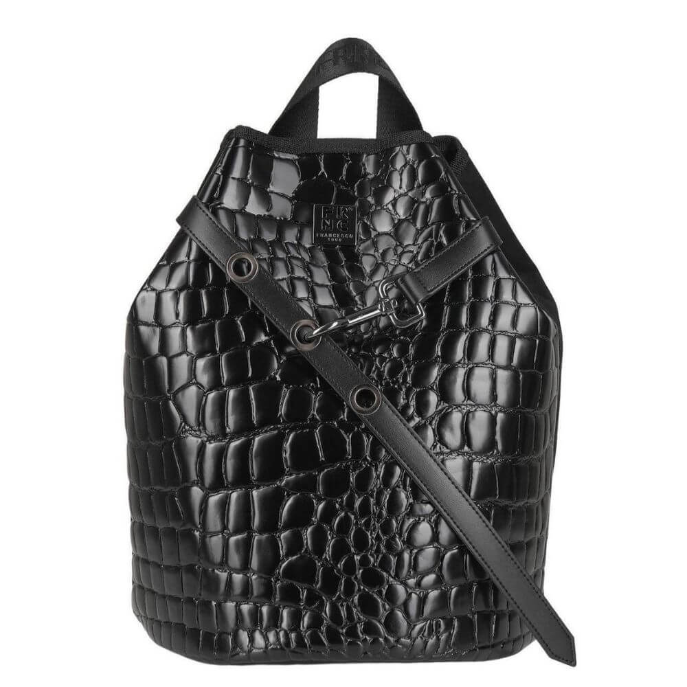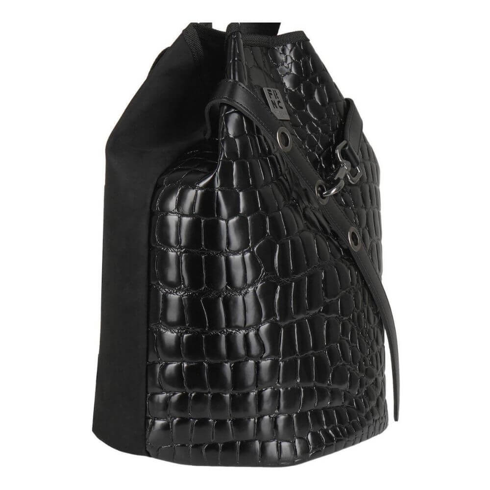 Γυναικεία τσάντα σακίδιο πλάτης FRNC με κωδικό 5922 σε μαύρο χρώμα .Συνδυάζει πολυτέλεια, πρακτικότητα και σύγχρονο design. Κατασκευασμένη από Eco pelle υψηλής ποιότητας σε croco όψη και υφή, με suede λεπτομέρειες στο πίσω μέρος και στα πλαϊνά, προσφέρει ξεχωριστή υφή και κομψότητα. Το εσωτερικό της είναι επενδεδυμένο με ύφασμα υψηλής ποιότητας και η κατασκευή της είναι 100% χειροποίητη στην Ελλάδα.
