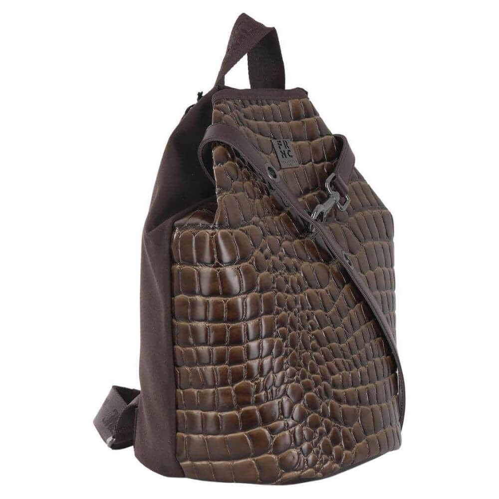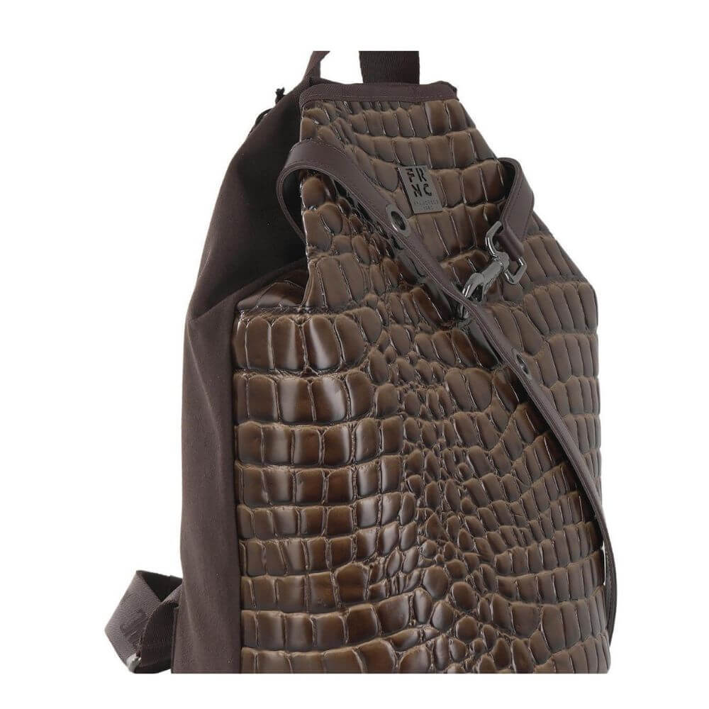 Γυναικεία τσάντα σακίδιο πλάτης FRNC με κωδικό 5922 σε καφέ χρώμα .Είναι ένα κομψό και πρακτικό αξεσουάρ, ιδανικό για καθημερινή χρήση. Κατασκευασμένη από Eco pelle υψηλής ποιότητας σε croco όψη και υφή, με suede λεπτομέρειες στο πίσω μέρος και στα πλαϊνά, προσφέρει πολυτελή εμφάνιση και αίσθηση. Το εσωτερικό είναι επενδεδυμένο με ύφασμα υψηλής ποιότητας και η τσάντα είναι 100% χειροποίητη στην Ελλάδα.