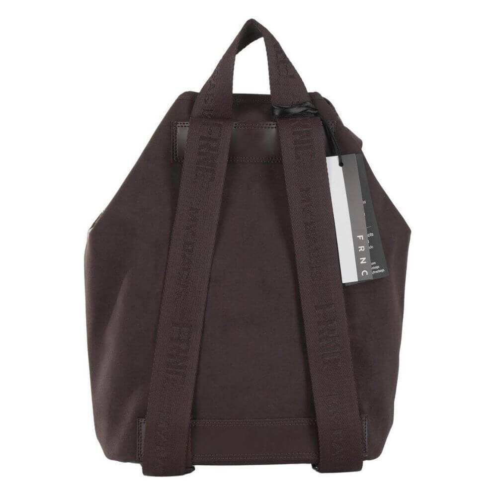 Διαθέτει ρυθμιζόμενους ιμάντες πλάτης και κλείνει με μαγνητικό κουμπί εξωτερικά και κλιπ εσωτερικά, εξασφαλίζοντας ασφάλεια και ευκολία στη χρήση. Μπροστά διαθέτει διακοσμητικά ζωνάκια που ενώνονται με μεταλλικό γάντζο και διάτρητο μεταλλικό logo FRNC που χαρίζει μοναδικό χαρακτήρα. Εσωτερικά περιλαμβάνει ενιαίο χώρο, μία τσέπη με φερμουάρ και μία θήκη για κινητό. Οι διαστάσεις της είναι Μ:31 cm x Π:21,5 cm x Υ:36 cm. Συνοδεύεται από υφασμάτινη θήκη αποθήκευσης FRNC.