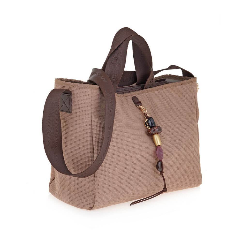Κατασκευασμένη από Eco Nubuck υλικό με ανάγλυφη υφή, προσφέρει ανθεκτικότητα και ιδιαίτερη αισθητική. Διαθέτει σταθερές χειρολαβές για μεταφορά στο χέρι, καθώς και μακρύ ρυθμιζόμενο και αποσπώμενο ιμάντα ώστε να φοριέται άνετα και χιαστί. Το εσωτερικό είναι φοδραρισμένο με ύφασμα υψηλής ποιότητας και κλείνει με φερμουάρ για μεγαλύτερη ασφάλεια των αντικειμένων.