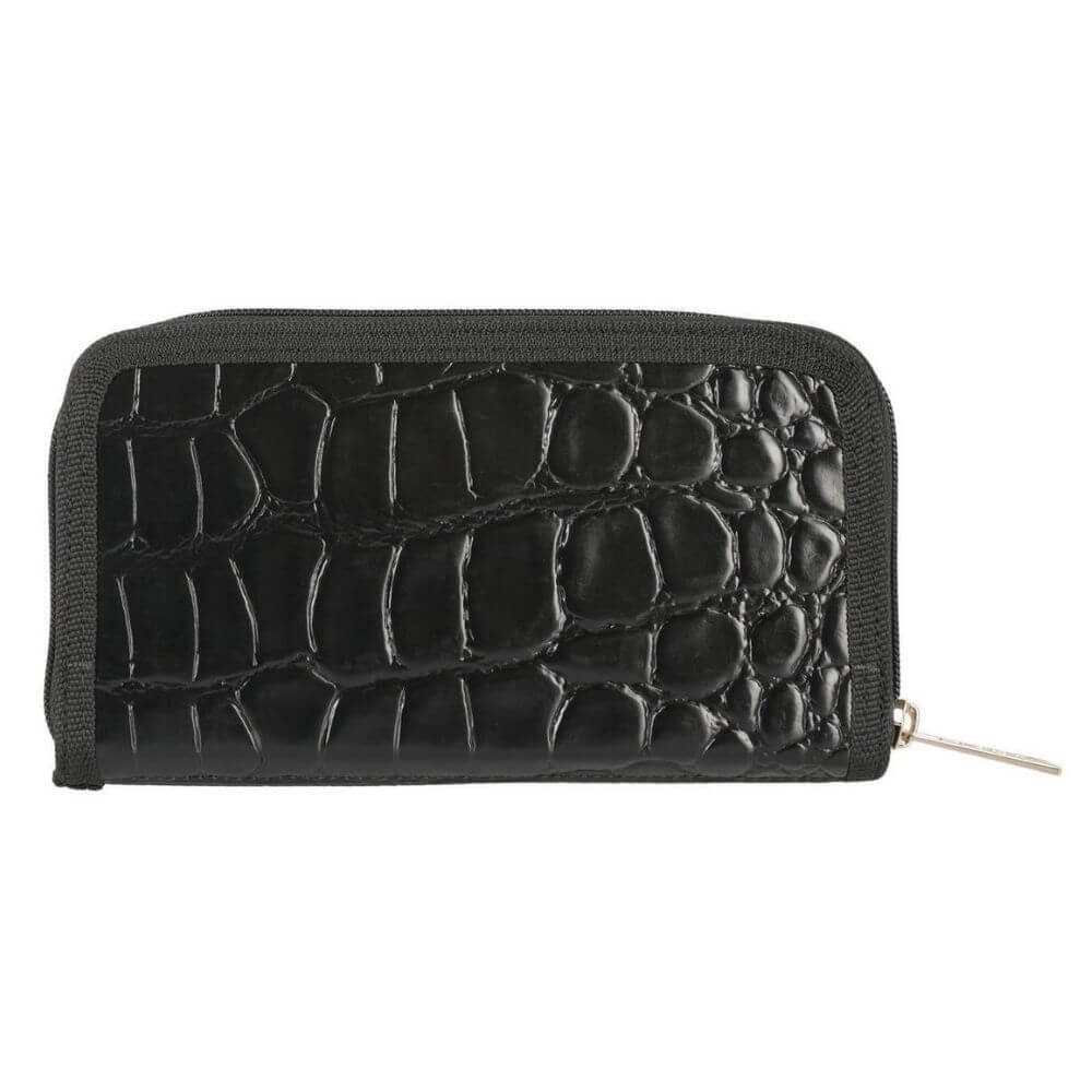 Ανοίγει περιμετρικά με φερμουάρ τύπου κασετίνας, αποκαλύπτοντας ευρύχωρη εσωτερική διάταξη. Διαθέτει δύο οργανωμένες πλευρές, με ειδικές θέσεις για κάρτες και χαρτονομίσματα, καθώς και ανεξάρτητη θήκη με φερμουάρ στο κέντρο, ιδανική για κέρματα ή μικροαντικείμενα.