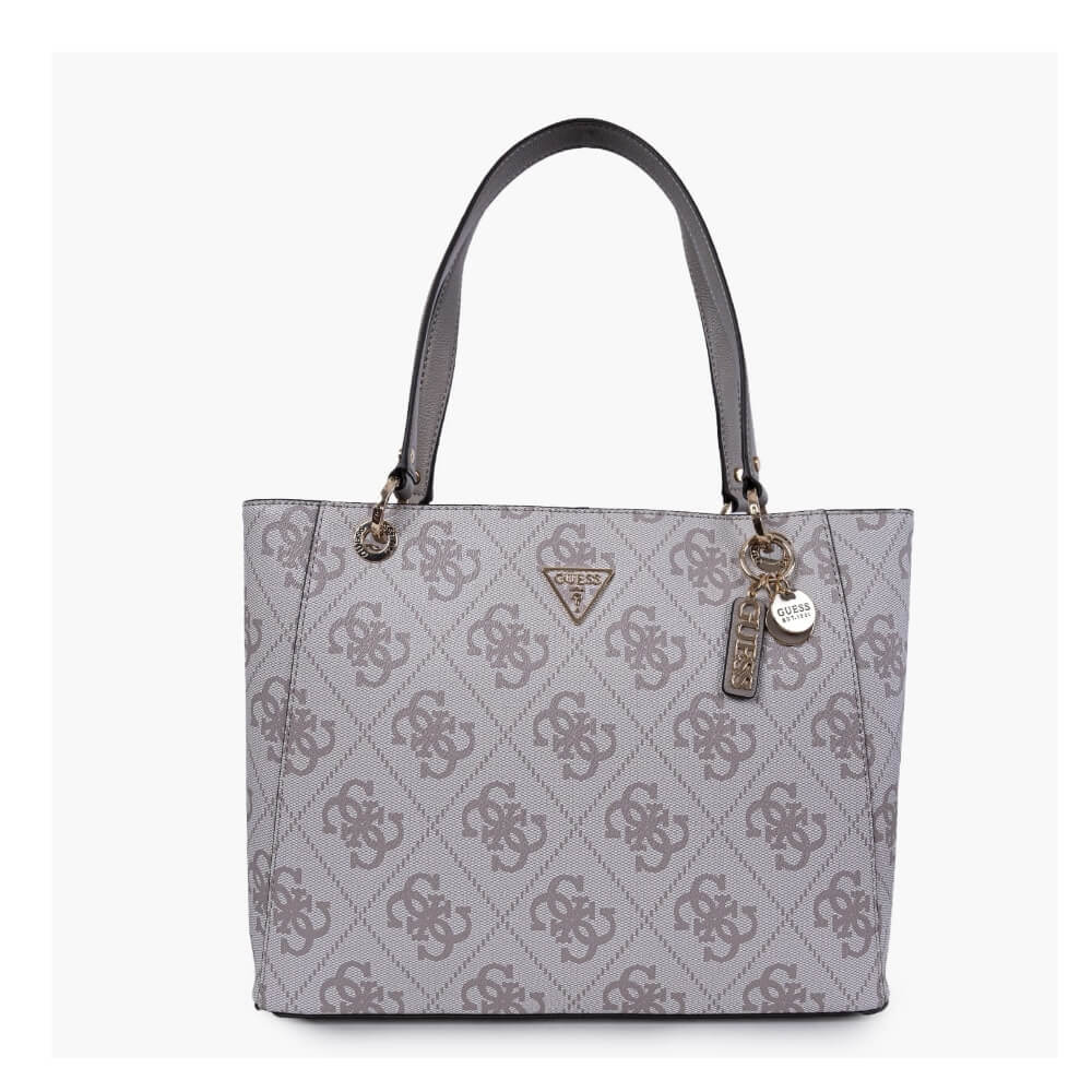 Γυναικεία τσάντα ώμου Guess Noelle II σε κομψή γκρι απόχρωση dark taupe με διακριτικό logo pattern και κωδικό προϊόντος HWSO9672250-Dark Taupe Logo, ιδανική για καθημερινές αλλά και πιο προσεγμένες εμφανίσεις. Δημιουργία του αμερικάνικου οίκου Guess, συνδυάζει μοντέρνο σχεδιασμό με πρακτικότητα, αποτελώντας ιδανική επιλογή για γυναίκες που αναζητούν άνεση και στυλ στην καθημερινότητά τους.