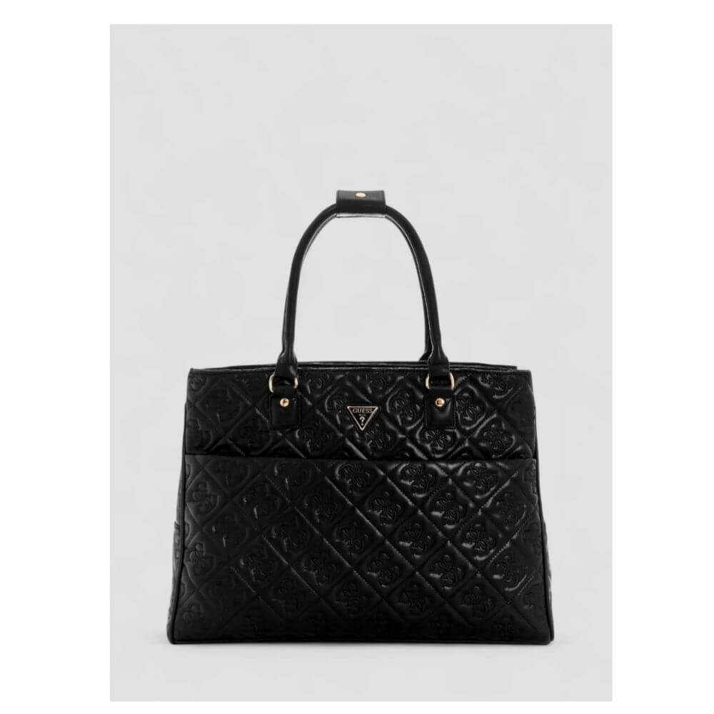Γυναικεία τσάντα ταξιδιού Guess Adelasia, σχεδιασμένη σε κομψό μαύρο χρώμα με καπιτονέ υφή από λείο PU και μοντέρνα, καθαρή γραμμή. Διαθέτει ασφαλές κλείσιμο με φερμουάρ στο επάνω μέρος και λαμπερά χρυσά μεταλλικά στοιχεία που προσθέτουν μια εκλεπτυσμένη πινελιά. Η ευρύχωρη εσωτερική της χωρητικότητα την καθιστά ιδανική για την εργασία, τα ψώνια ή τις καθημερινές σας μετακινήσεις, ενώ οι διπλές χειρολαβές και οι εξωτερικές τσέπες μπροστά και πίσω προσφέρουν πρακτικότητα και άνεση. Κατασκευασμένη από λείο PU τόσο στο σώμα όσο και στα τελειώματα, συνδυάζει αντοχή και στυλ. Διαστάσεις: 45.5 x 19 x 34.3 cm.