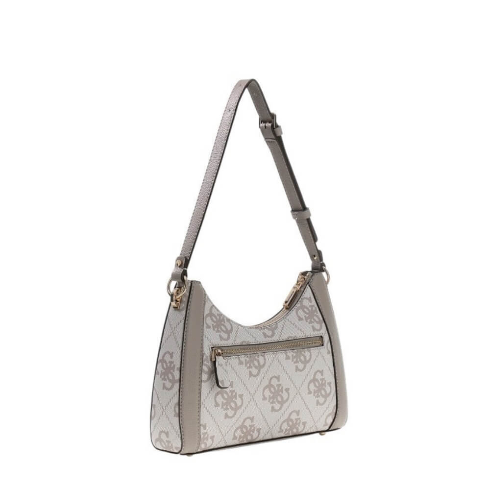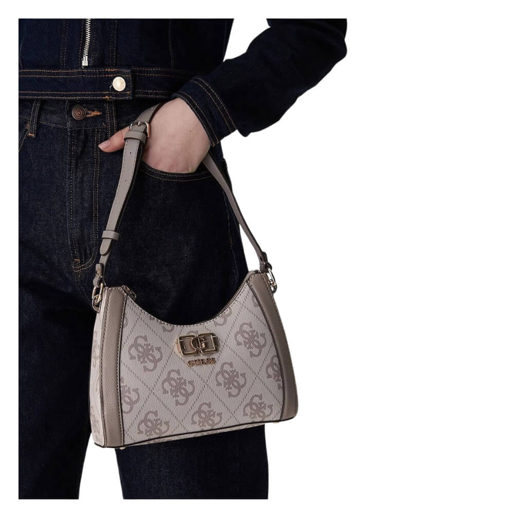 Γυναικεία τσάντα ώμου Guess Karnilla HWOS9901180-Dark Taupe Logo σε γκρι απόχρωση. Αποτελεί μια κομψή και ευέλικτη επιλογή που συνδυάζει σύγχρονο design με πρακτικότητα. Κατασκευασμένη εξωτερικά από οικολογικό δέρμα (eco leather) και με υφασμάτινη επένδυση στο εσωτερικό, προσφέρει ανθεκτικότητα και άνεση στην καθημερινή χρήση.