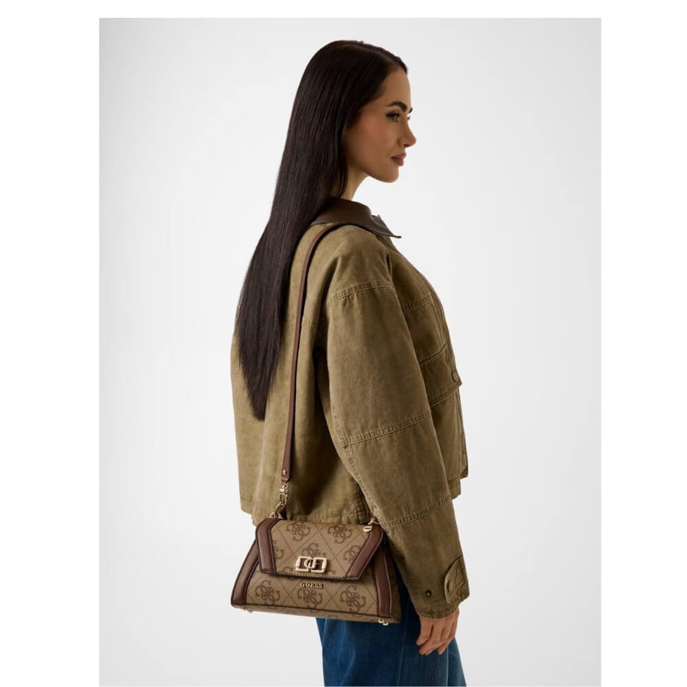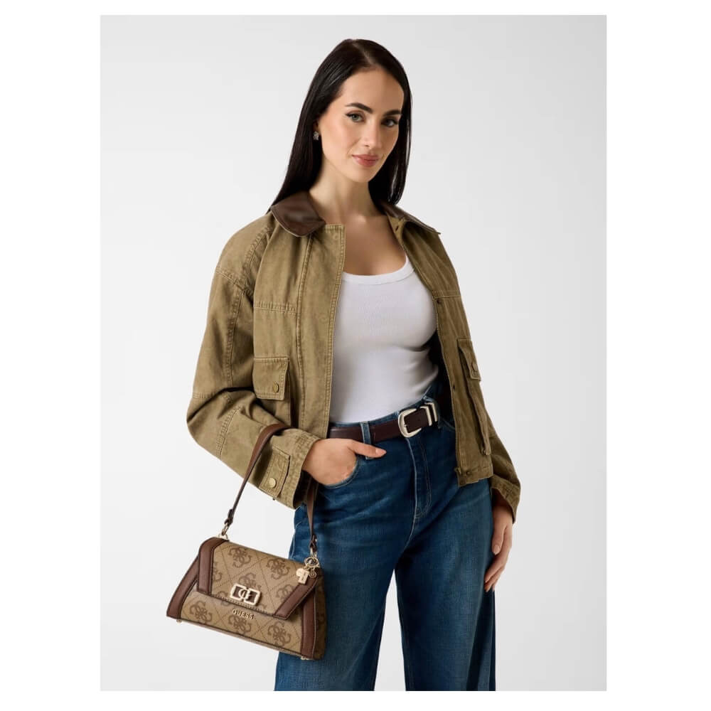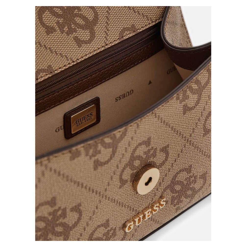 GUESS Karnilla Γυναικεία Τσάντα Ώμου/Χιαστί Καφέ/Ταμπά HWOS9901190-Latte logo