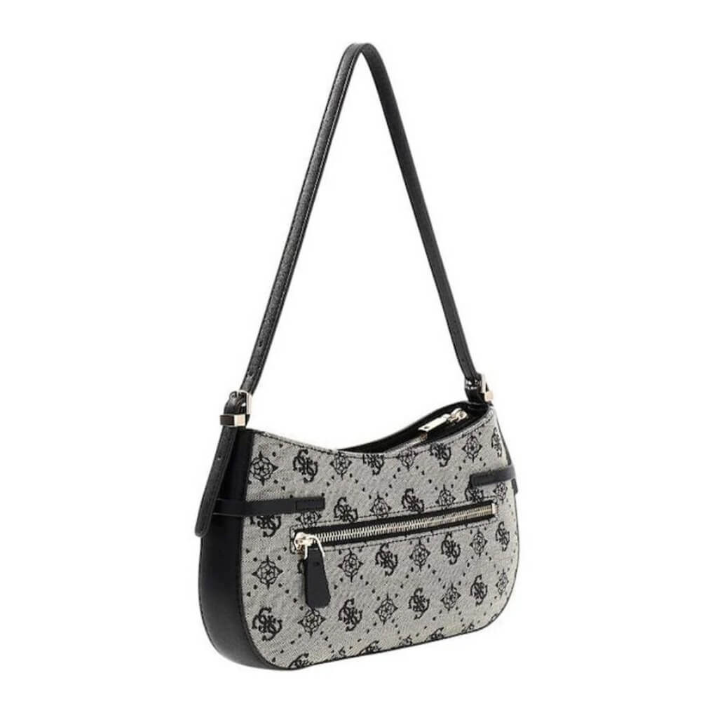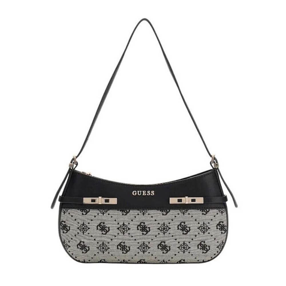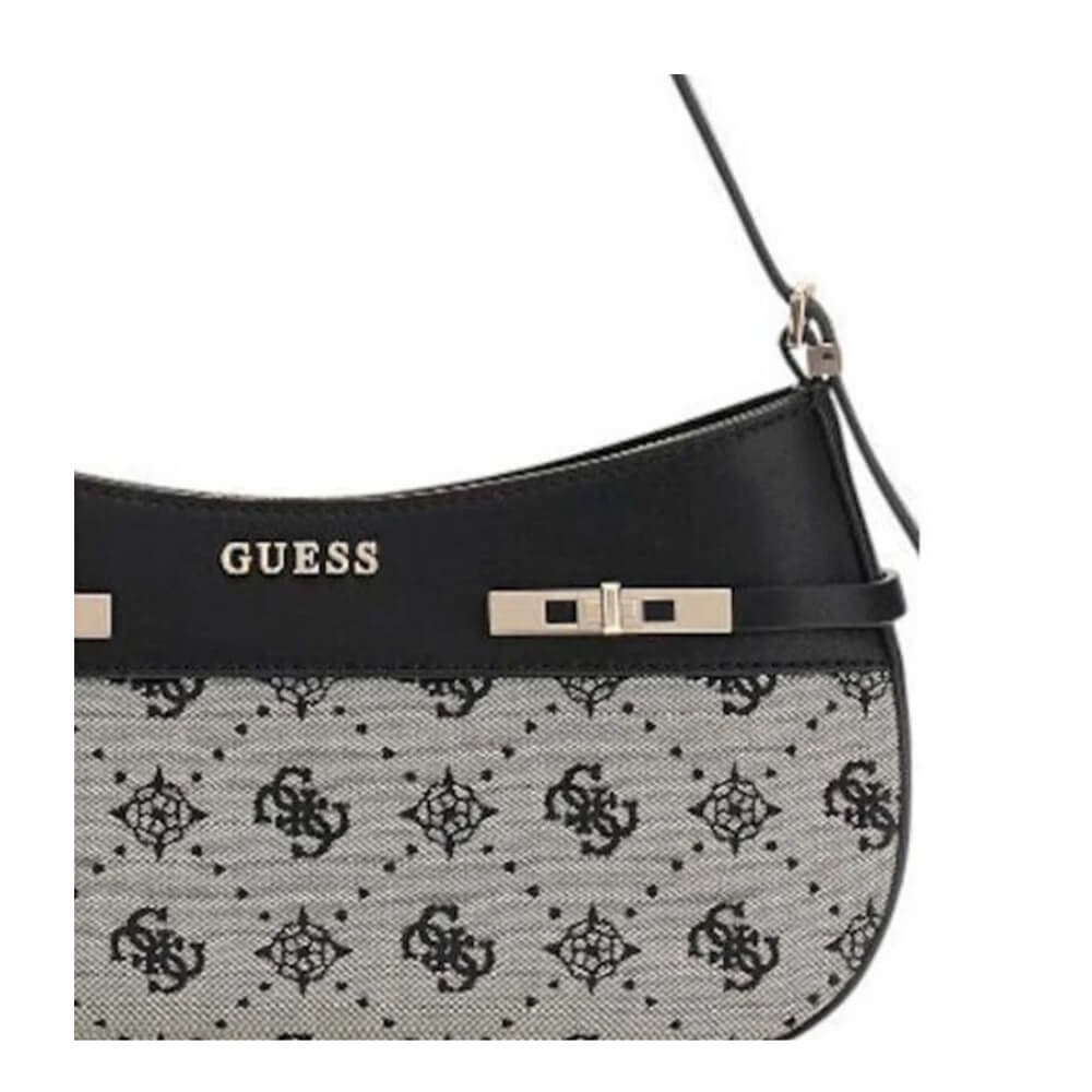 Γυναικεία τσάντα ώμου GUESS Melinda Logo HWJP9902170 σε μαύρη απόχρωση (Black Logo). Ένα κομψό και ευέλικτο σχέδιο που συνδυάζει minimal αισθητική με διαχρονικό χαρακτήρα.