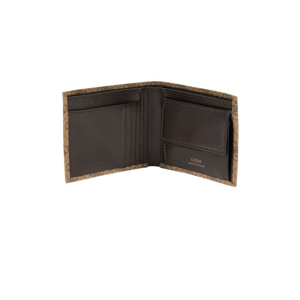 Ανδρικό δερμάτινο πορτοφόλι GUESS Mito Billfold SMVELELEA20-BBO σε μπεζ χρώμα, με κομψό all over 4G logo print που αναδεικνύει τον χαρακτηριστικό σχεδιασμό του brand. Είναι κατασκευασμένο από 100% γνήσιο δέρμα υψηλής ποιότητας και διαθέτει ένα κύριο διαμέρισμα για χαρτονομίσματα, καθώς και πολλαπλές εσωτερικές θήκες για κάρτες, προσφέροντας άριστη οργάνωση στην καθημερινή χρήση. Περιλαμβάνει ξεχωριστή θήκη για κέρματα με snap κουμπί για ασφαλές κλείσιμο, ενώ το μεταλλικό τριγωνικό λογότυπο Guess στο μπροστινό μέρος προσθέτει μια διακριτική luxury πινελιά. Με διαστάσεις 13 x 10 x 2 cm, αποτελεί ιδανική επιλογή για άνδρες που αναζητούν πρακτικότητα, ποιότητα και σύγχρονο στυλ.