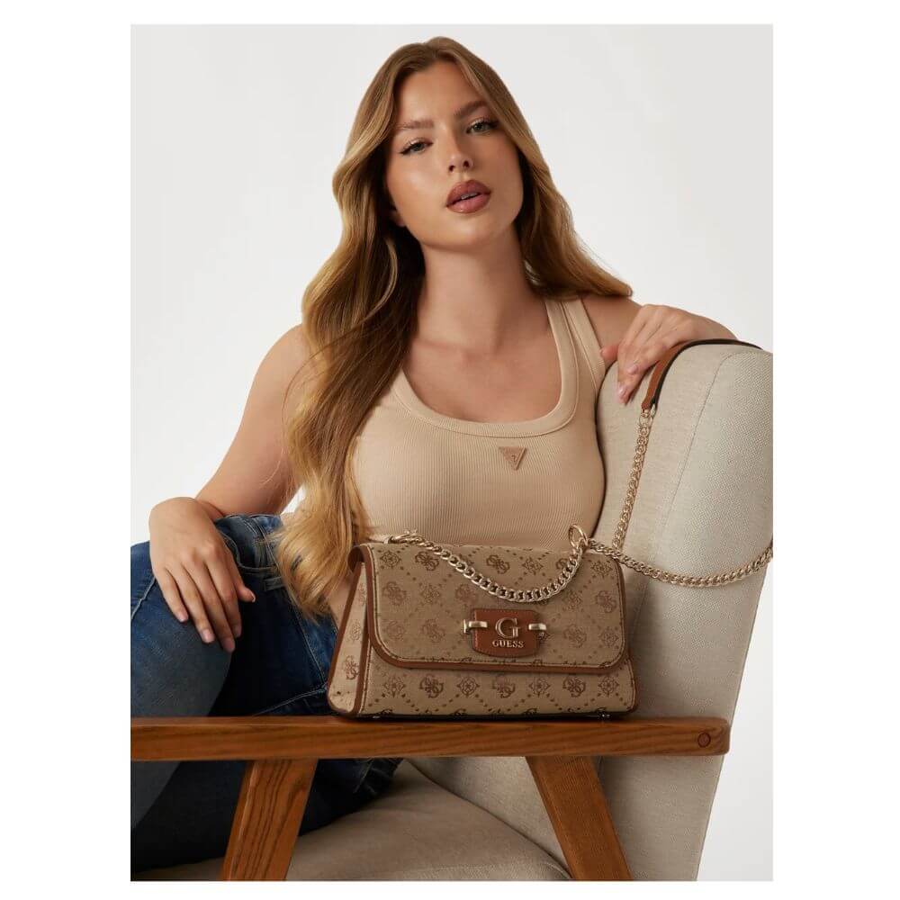 Γυναικεία τσάντα ώμου Guess Neda με κωδικό HWJP9654210-LTL σε κομψή μπεζ απόχρωση. Ένα elegant και θηλυκό σχέδιο που συνδυάζει το διαχρονικό στυλ με τη λειτουργικότητα, ιδανικό για όλες τις ώρες της ημέρας.