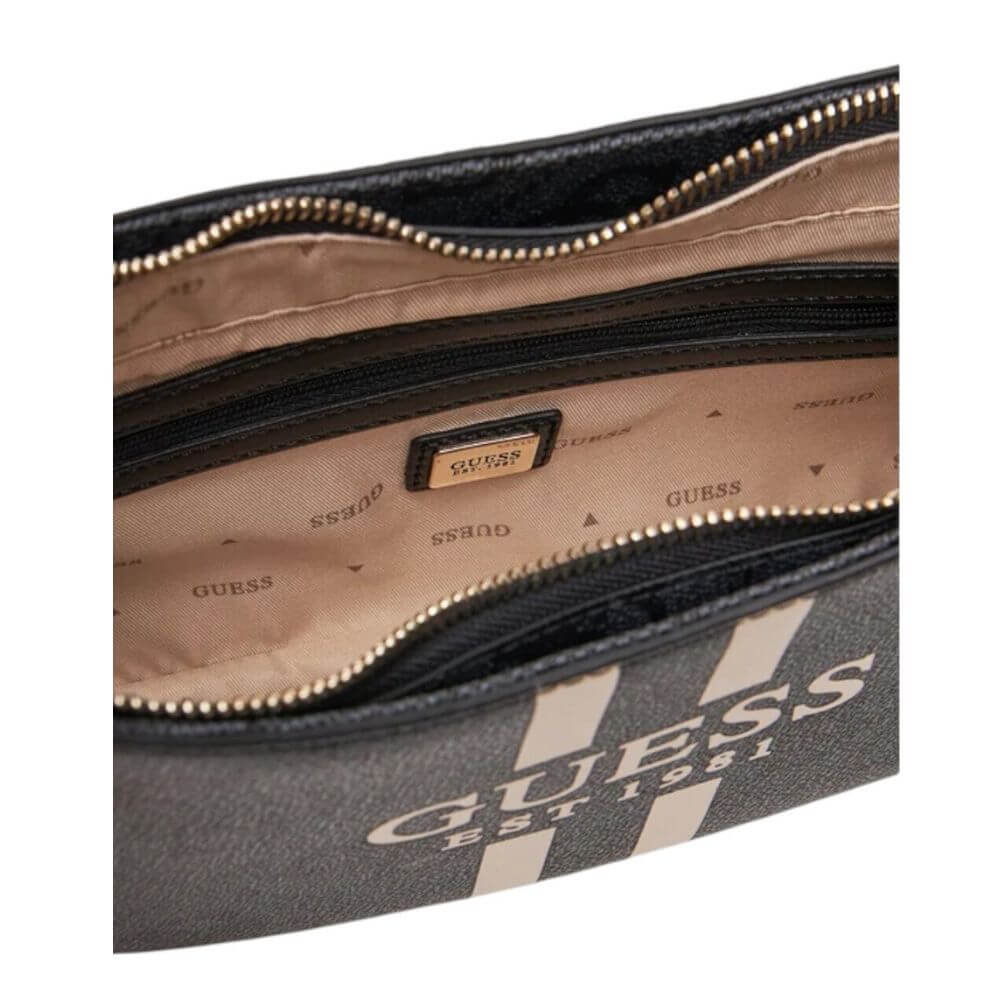 Γυναικεία τσάντα Guess Noelle με κωδικό HWOS9672180-CLO .Αποτελεί ένα κομψό και πρακτικό αξεσουάρ, ιδανικό για κάθε περίσταση. Κατασκευασμένη από οικολογικό δέρμα υψηλής ποιότητας, είναι εύκολη στη φροντίδα και τον καθαρισμό, ενώ το άκαμπτο υλικό της διατηρεί το σχήμα της αναλλοίωτο με την πάροδο του χρόνου. Διαθέτει κύρια θήκη που ασφαλίζει με φερμουάρ, εσωτερικές θήκες για κάρτες (3 υποδοχές) και μια επιπλέον εσωτερική τσέπη με φερμουάρ για την αποθήκευση των απαραίτητων αντικειμένων. Το σκληρυμένο κάτω μέρος προσφέρει σταθερότητα και ανθεκτικότητα στη χρήση. Μπορεί να μεταφερθεί εύκολα στο χέρι ή στον ώμο, χάρη στον αποσπώμενο και ρυθμιζόμενο ιμάντα με μήκος από 52 έως 72 cm. Ένα διαχρονικό κομμάτι της συλλογής Guess που συνδυάζει κομψότητα, λειτουργικότητα και άψογη ποιότητα κατασκευής.