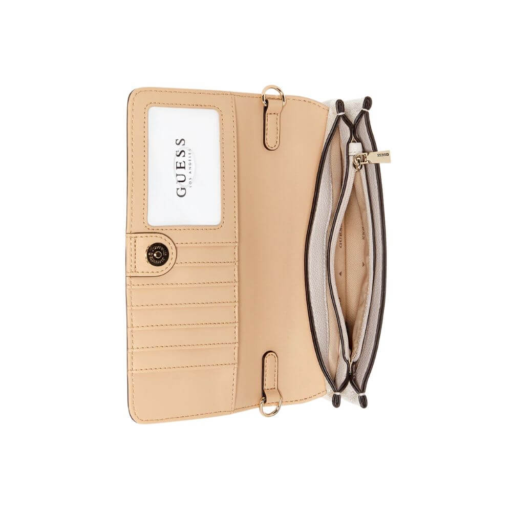Γυναικείο τσαντάκι – πορτοφόλι Guess από τη σειρά Noelle, σε μπεζ χρώμα, με κωδικό HWBG9672750-LTL. Ένα πρακτικό και κομψό αξεσουάρ που μπορεί να χρησιμοποιηθεί με πολλούς τρόπους, καλύπτοντας διαφορετικές ανάγκες.