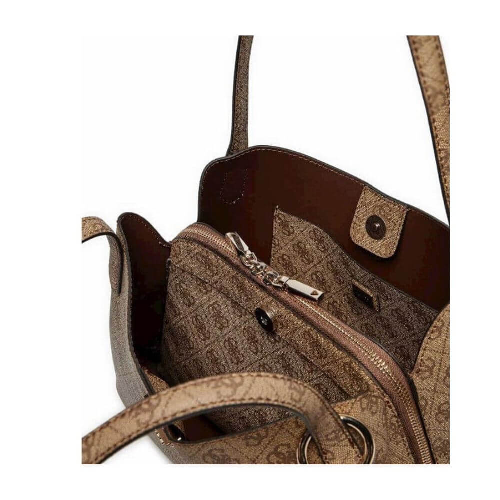 Γυναικεία τσάντα ώμου Guess από τη σειρά Sora, σε κομψή απόχρωση latte, ιδανική για καθημερινή χρήση με στυλ και πρακτικότητα. Διαθέτει άνετα λουριά ώμου που προσφέρουν ευκολία στη μεταφορά, ενώ ο εσωτερικός της χώρος είναι έξυπνα διαμορφωμένος με τρεις κεντρικές θέσεις. Η μεσαία θήκη ασφαλίζει με φερμουάρ, προσφέροντας μεγαλύτερη προστασία για τα προσωπικά αντικείμενα, ενώ οι δύο πλαϊνές θέσεις κλείνουν με διακριτικά κλιπ για εύκολη πρόσβαση. Ο μοντέρνος σχεδιασμός και η διακριτική κομψότητα της σειράς Sora την καθιστούν ιδανική επιλογή για κάθε περίσταση.