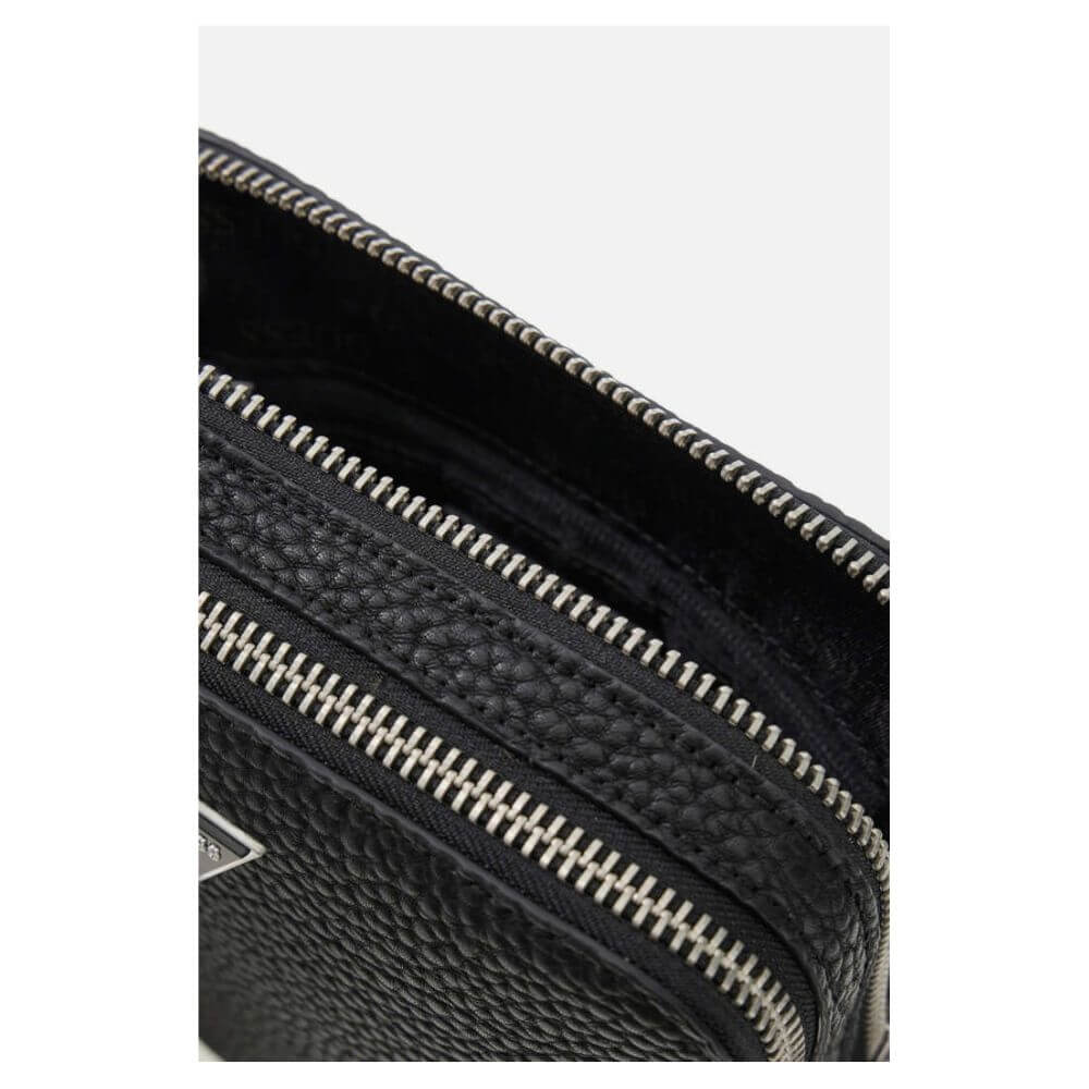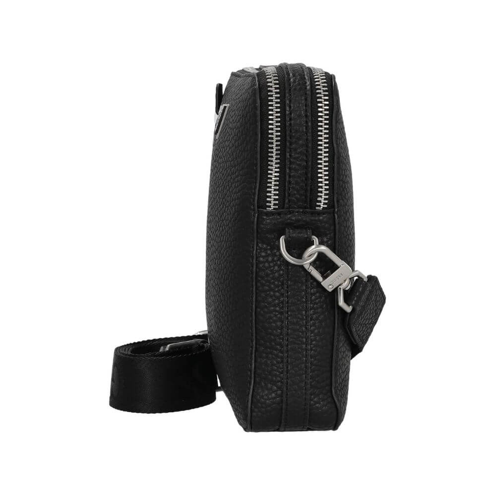 Ανδρικό τσαντάκι χιαστί GUESS Torino HMTOGRP5218-BLA σε μαύρο χρώμα, ιδανικό για καθημερινή χρήση με μοντέρνο και πρακτικό σχεδιασμό. Είναι κατασκευασμένο από οικολογικό συνθετικό δέρμα υψηλής ποιότητας, προσφέροντας αντοχή και κομψή εμφάνιση. Διαθέτει διπλό κλείσιμο με φερμουάρ που δημιουργεί δύο ξεχωριστές κύριες θέσεις για καλύτερη οργάνωση των προσωπικών σας αντικειμένων, καθώς και μπροστινή τσέπη με φερμουάρ για εύκολη και ασφαλή πρόσβαση σε ό,τι χρειάζεστε άμεσα. Το διαχρονικό μαύρο χρώμα και το χαρακτηριστικό στυλ της σειράς Torino το καθιστούν μια ευέλικτη επιλογή που συνδυάζεται εύκολα με κάθε καθημερινό outfit.