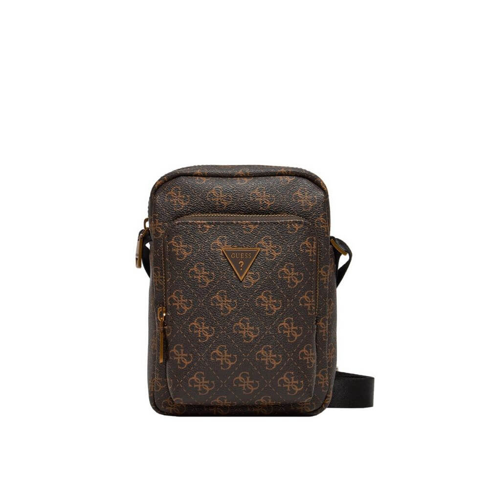 Ανδρικό τσαντάκι χιαστί GUESS Vezzola Smart HMEVZLP3163-BNH σε καφέ χρώμα, με κομψό all over logo print που προσδίδει διαχρονικό και μοντέρνο χαρακτήρα. Κατασκευασμένο από υδατοαπωθητικό eco leather υψηλής ποιότητας, προσφέρει αντοχή και άνεση στην καθημερινή χρήση. Διαθέτει ένα κύριο διαμέρισμα κατάλληλο για συσκευή έως 6,8’’, καθώς και μπροστινή θήκη με φερμουάρ για την ασφαλή αποθήκευση των απαραίτητων αντικειμένων. Επιπλέον, περιλαμβάνει μία ανοιχτή εξωτερική θήκη για εύκολη πρόσβαση σε gadget ή μικροαντικείμενα. Ο ρυθμιζόμενος ιμάντας ώμου από νάιλον υψηλής πυκνότητας εξασφαλίζει άνετη εφαρμογή, ενώ το μεταλλικό λογότυπο Guess στο μπροστινό μέρος ολοκληρώνει το προσεγμένο design. Με διαστάσεις 14 x 20 x 4 cm, αποτελεί ιδανική επιλογή για καθημερινές εμφανίσεις με στυλ και πρακτικότητα