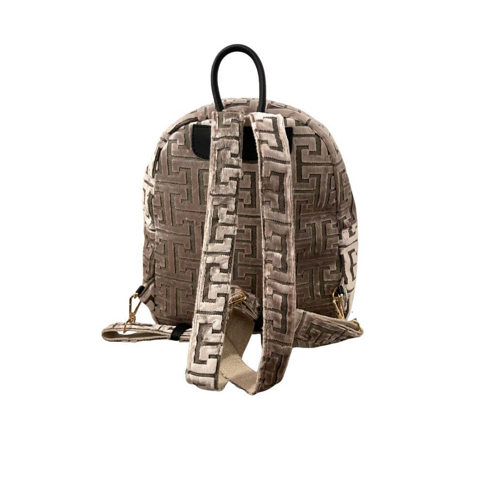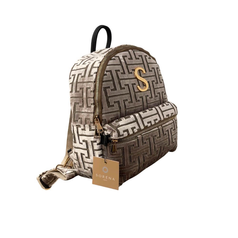 Γυναικεία τσάντα πλάτης της εταιρείας Sorena Handmade, με κωδικό Daphne Backpack σε γκρι χρώμα. Κατασκευασμένη στην Ελλάδα, διαθέτει κομψό σχεδιασμό και βελούδινη υφή, ενώ στο μπροστινό μέρος έχει πρακτική τσέπη. Εσωτερικά περιλαμβάνει ενιαίο φοδραρισμένο χώρο που προσφέρει άνεση και λειτουργικότητα. Ιδανική επιλογή για καθημερινές εμφανίσεις με στυλ. 100% χειροποίητη στην Ελλάδα.