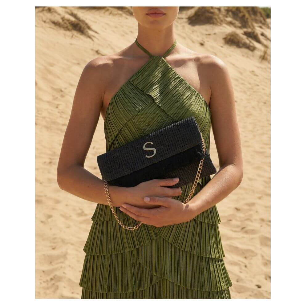 Γυναικεία τσάντα χειρός και χιαστί Harites Clutch Ithacas της SORENA. Αποτελεί μια κομψή και ιδιαίτερη πρόταση που συνδυάζει πολυτέλεια και καλοκαιρινή αισθητική. Το luxury ύφασμα από ψάθα χαρίζει φυσική κομψότητα και ξεχωριστό χαρακτήρα, ιδανικό για εμφανίσεις που θέλουν να ξεχωρίζουν.