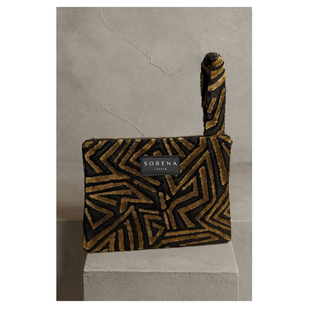 Γυναικεία τσάντα χειρός Sorena Sylvana Clutch .Συνδυάζει κομψότητα και διαχρονικό στυλ. Σε χρυσή και μαύρη απόχρωση, προσθέτει λάμψη σε κάθε εμφάνιση και μπορεί να φορεθεί όλες τις ώρες της ημέρας. Διαθέτει αλυσιδάκι για άνεση και ευελιξία, ώστε να κρατηθεί είτε στο χέρι είτε στον ώμο, ανάλογα με την περίσταση. Ιδανική επιλογή για εξόδους, επίσημες εκδηλώσεις ή για να αναβαθμίσει το καθημερινό σας outfit.