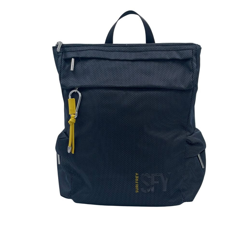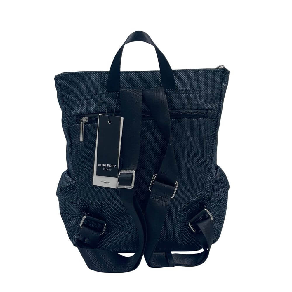 Γυναικεία τσάντα πλάτης της εταιρείας Suri Frey σε μαύρο χρώμα. Διαθέτει δύο μπροστινές θήκες, μία πίσω τσέπη με φερμουάρ και πλαϊνές τσέπες για επιπλέον αποθήκευση. Το κύριο διαμέρισμα κλείνει με φερμουάρ και περιλαμβάνει οργανωμένες εσωτερικές θήκες. Οι ρυθμιζόμενοι ιμάντες προσφέρουν άνετη εφαρμογή στην πλάτη και πρακτικότητα για καθημερινές δραστηριότητες.