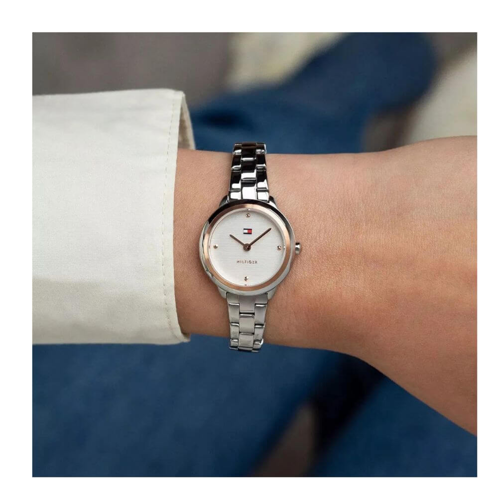 Γυναικείο ρολόι TOMMY HILFIGER σειρά Demi, με διαχρονικό και κομψό σχεδιασμό που ταιριάζει ιδανικά σε κάθε περίσταση, από την καθημερινότητα έως πιο προσεγμένες εμφανίσεις. Διαθέτει ασημί καντράν που προσδίδει φωτεινότητα και κομψότητα, σε αρμονικό συνδυασμό με την κάσα και το μπρασελέ από ανοξείδωτο ατσάλι.