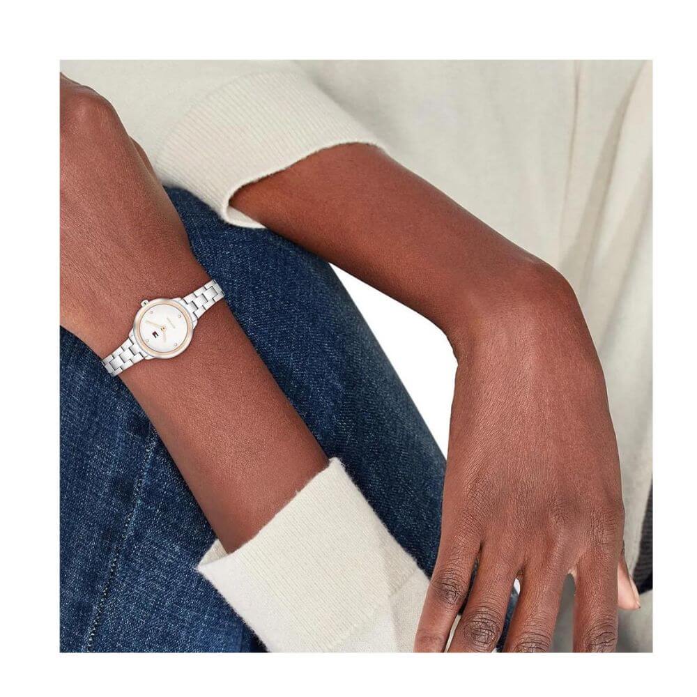 Με διάμετρο 26 mm, αποτελεί μια φίνα και θηλυκή επιλογή για όσες προτιμούν κομψά ρολόγια με διακριτική παρουσία. Συνοδεύεται από 2ετή εγγύηση επίσημης αντιπροσωπείας Tommy Hilfiger.