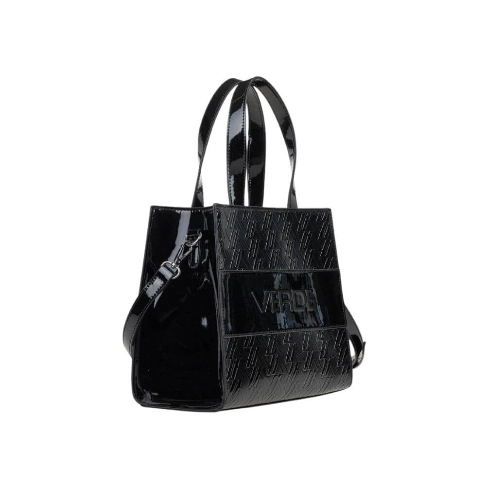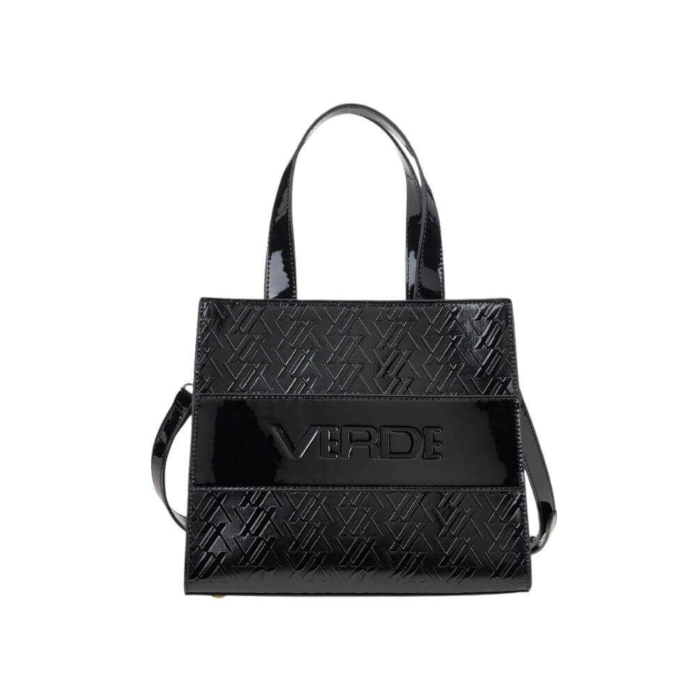 Γυναικεία τσάντα χειρός Verde σε λουστρίνι υφή .Ξεχωρίζει χάρη στη μοντέρνα γυαλιστερή της όψη και το ανάγλυφο λογότυπο που της δίνει μια εντυπωσιακή, elegant ταυτότητα. Η λαμπερή επιφάνεια προσφέρει μια ιδιαίτερη δόση πολυτέλειας, καθιστώντας την ιδανική τόσο για καθημερινό στιλ όσο και για πιο προσεγμένες εμφανίσεις.