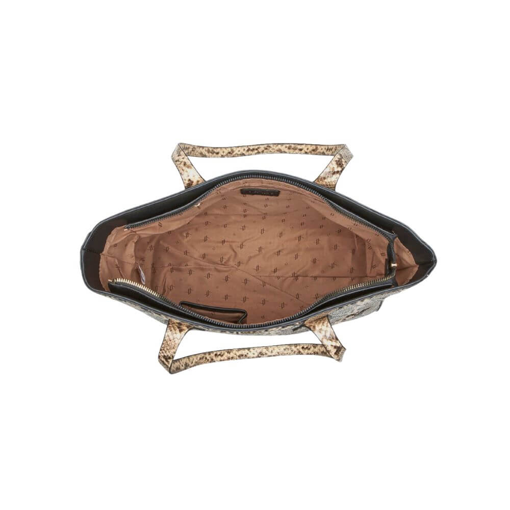 Γυναικεία τσάντα ώμου της Verde σε μπεζ χρώμα με animal μοτίβο τύπου φίδι .Προσφέρει έναν κομψό συνδυασμό διακριτικότητας και δυναμισμού. Η απαλή μπεζ απόχρωση δένει αρμονικά με την ανάγλυφη υφή, δημιουργώντας ένα σχέδιο που τραβάει την προσοχή χωρίς να γίνεται υπερβολικό. Τα μακριά διπλά χερούλια προσφέρουν άνεση στον ώμο, ενώ η σταθερή κατασκευή της τσάντας διατηρεί το σχήμα της όλη μέρα, καθιστώντας την ιδανική για καθημερινές μετακινήσεις αλλά και πιο προσεγμένες εμφανίσεις.